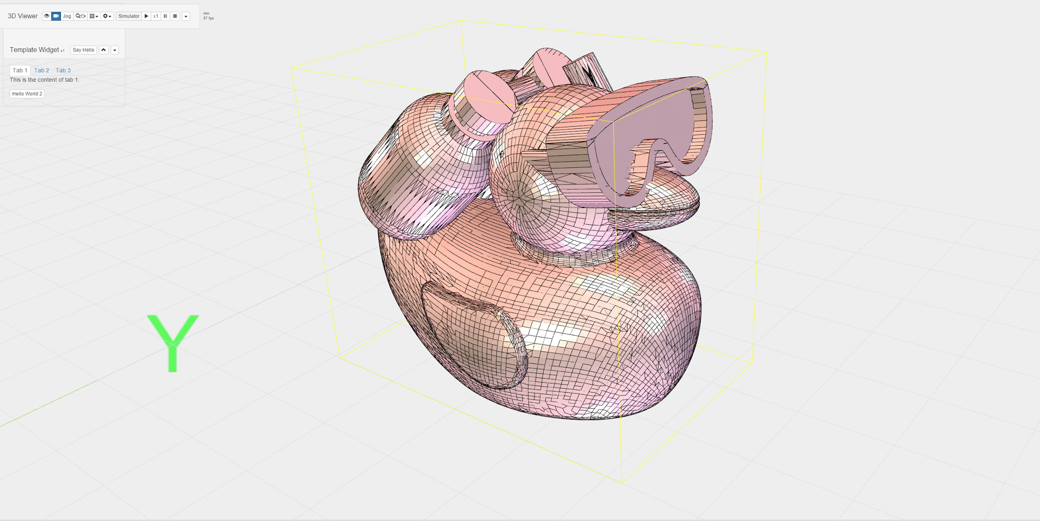 Scuba Duck in the flesh! With bounding boxes and line-edge rendering. A bit intimidating if you ask me, we’ll move those lines over to a soft grey color. Yeah. Chilipeppr can do STL’s now.