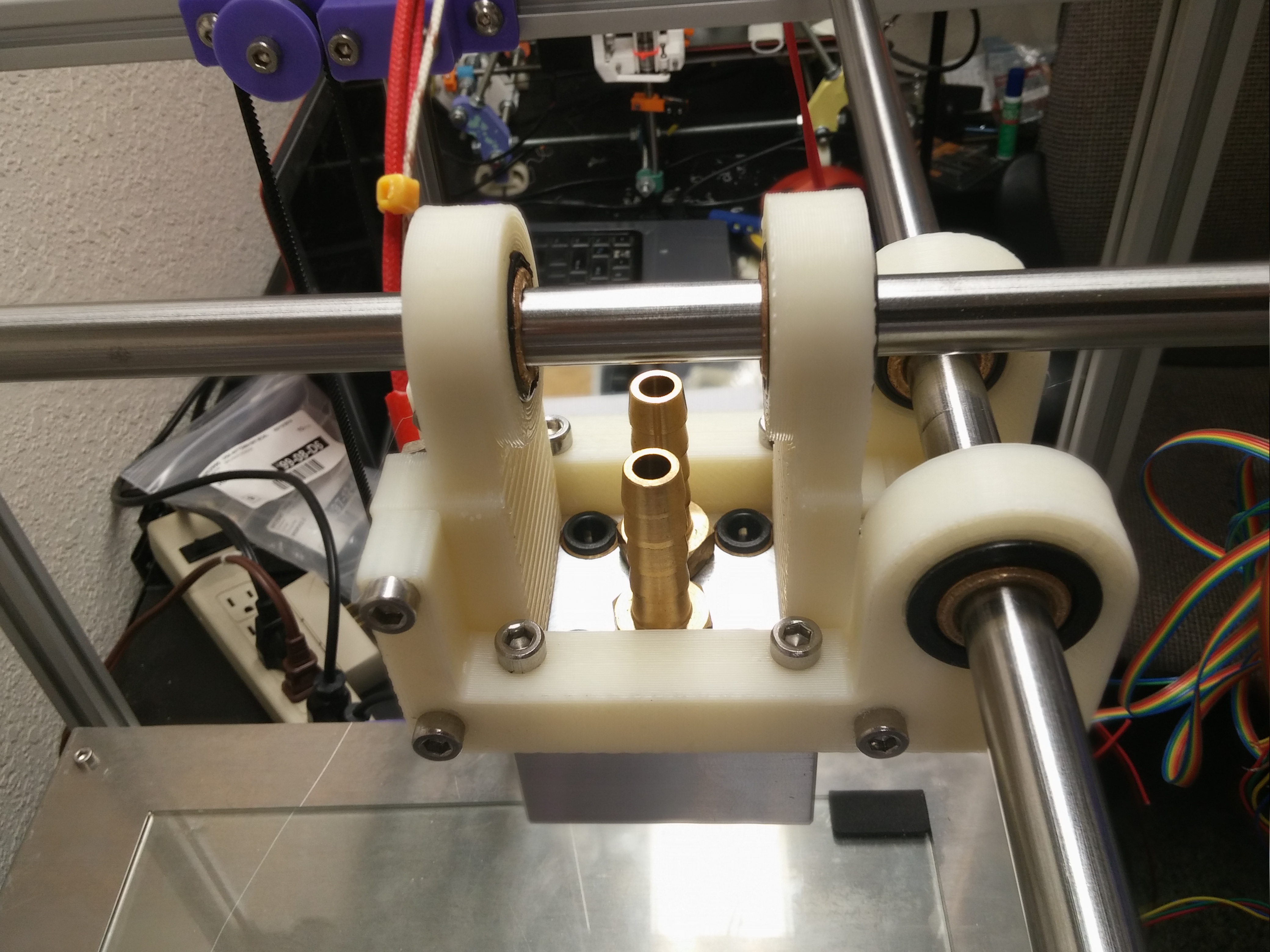 Second version of the carriage for the Kraken. Centered on the rods better and this one will let the Kraken actually touch the build surface. These prints were sliced with CraftWare software. CraftWare lets you modify support similar to Simplify3D.