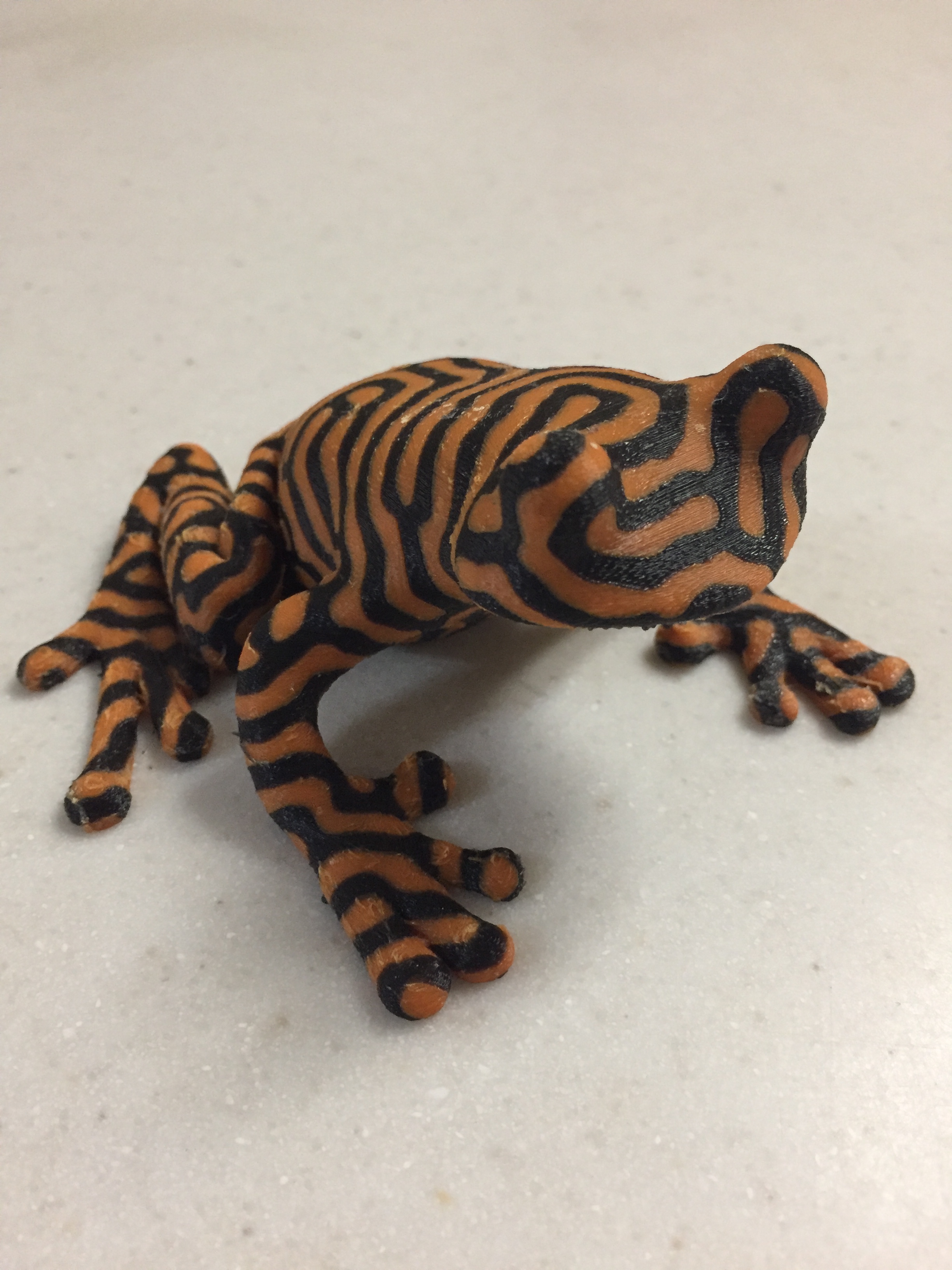 Using a ReliaBuild 3D Dual (RBB3 Dual) printer I printed this two color tree frog while demonstrating the printer at a recent convention.