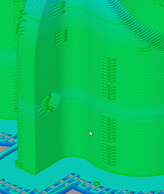Simplify3D users, I need some help. Im working on these bearing holders for my new printer, Im having issues with these pimples. This is the representation in simplify, but the parts come out looking exactly like this covered in pimples.
