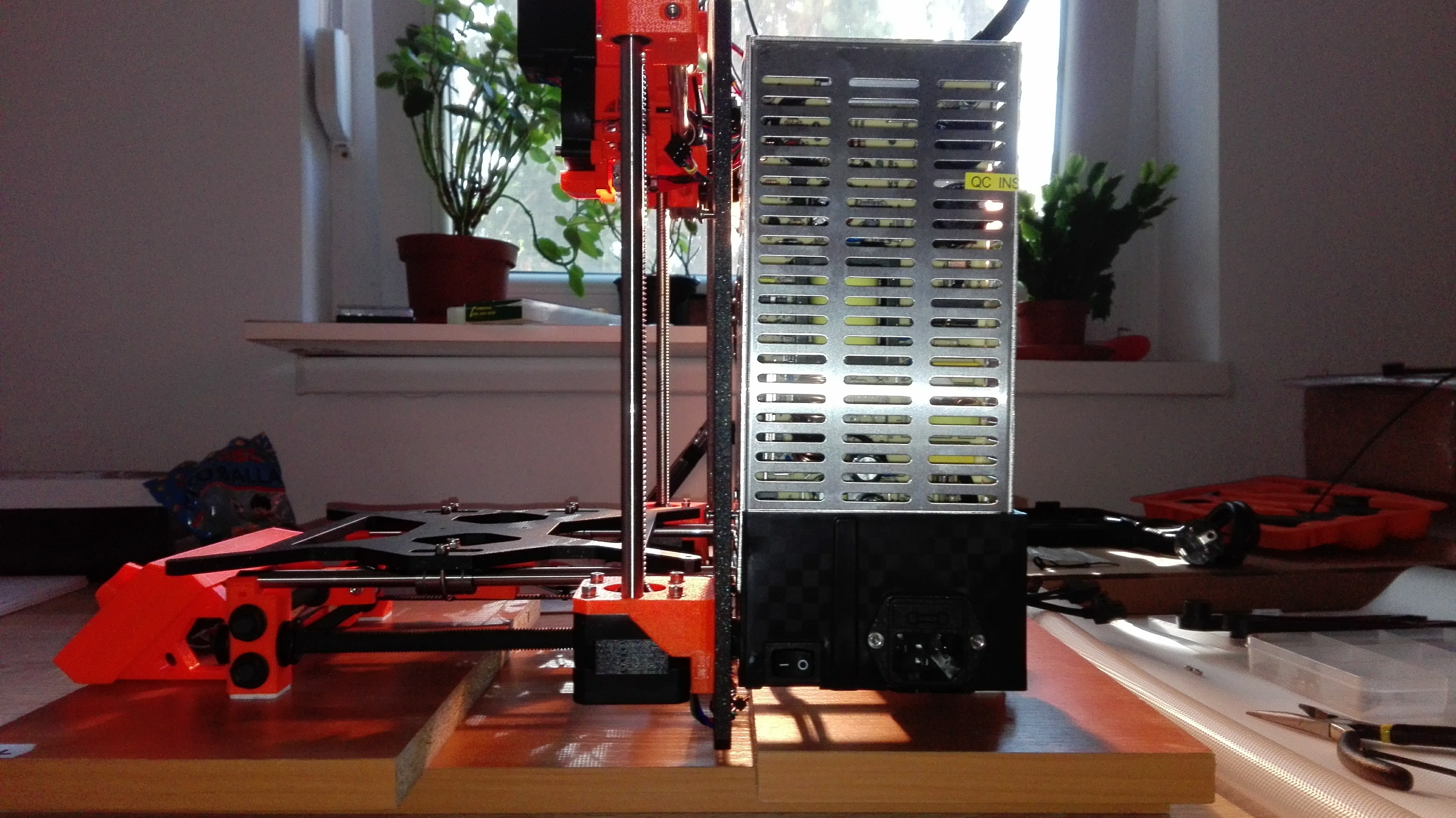 Although the Z-Plate is at exactly 100mm from the back feet, as requested by the manual, it seems that the plastic part that mounts the PSU is not positioned so that the PSU is flush with Z-Plate as it should have. Instead, if I mount the PSU on that plastic part first, I get this large gap to the Z-Plate, | say in excess of 2-3mm. While the top side of the PSU will easily be pulled towards the Z-Plate because of the plastic parts that give anough, the lower side is very difficult to get closer to the Z-Plate and I am afraid that the Z-Plate will not be stiff enough to force it towards it but will flex/skew a tiny bit instead.