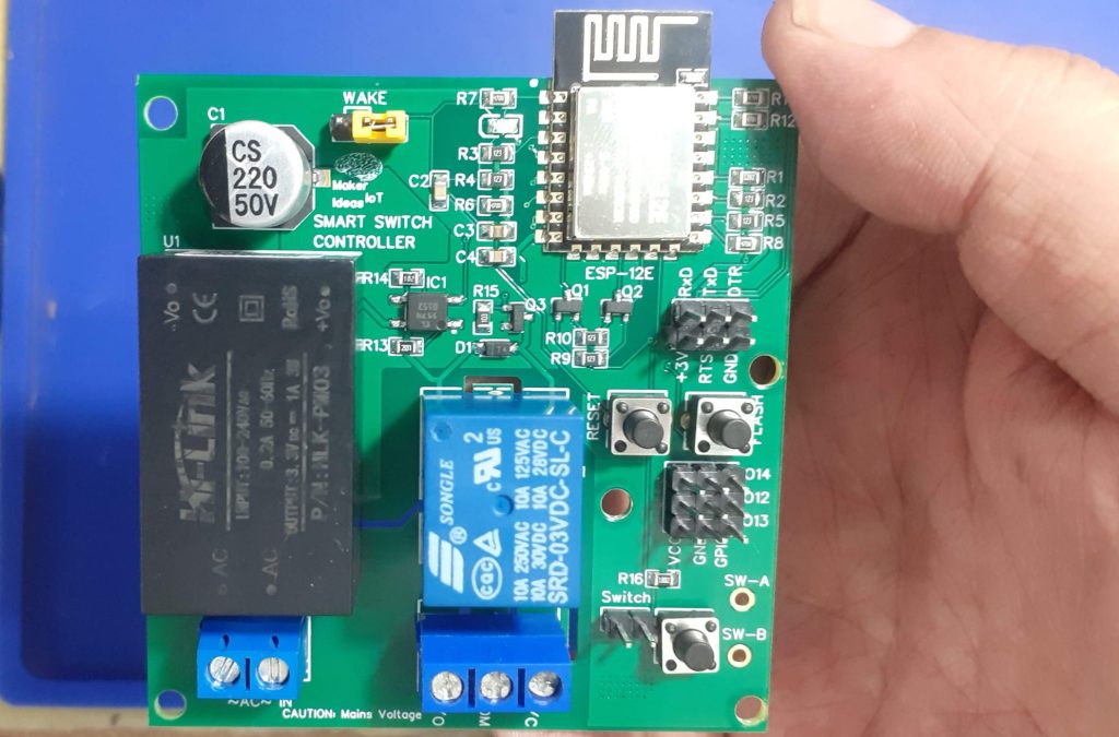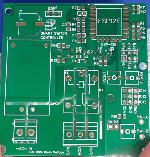Finally, we have the relay control switch, with a few options to connect external switches, either on the 2.54mm header, or via wires soldered to the pads marked SW-A and SW-B