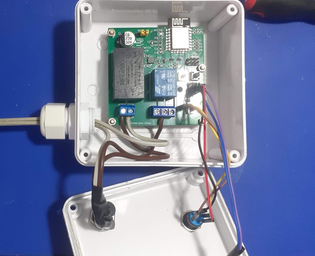 The light in the outside kitchen consists of a simple bulb that the owner has routed into the house via an electrical flex cord, at least that was standard… But, due to laziness or just whatever, that cord was never terminated into a proper switch… He just added a plug. This is thus my opportunity to make life a bit easier for myself in that area. I could have opted for a standard switch, but then, automating this can take care of another problem… We constantly forget to switch that light off, as the plug is in a “strange place” that is not usually associated with the kitchen lights…