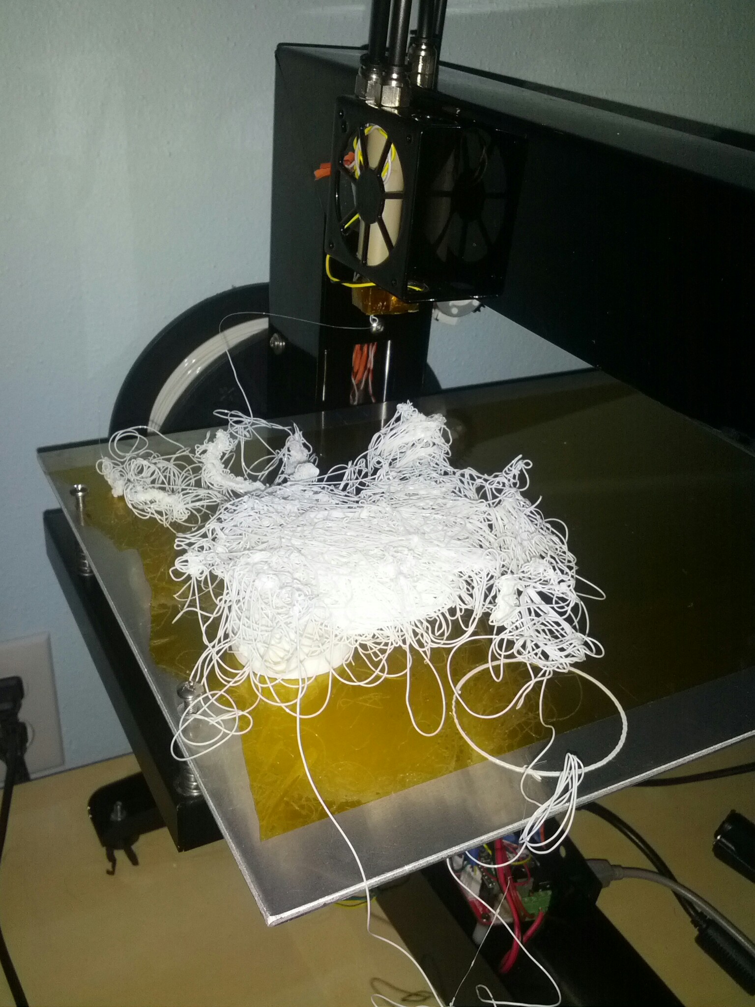 So after noticing that removing prints from the bed was getting exceedingly more difficult, and pausing my octopus print while I was at work and shutting down the heaters successfully, I decided to print the colonel by Sculptor, shutting off the need heater after the 6th later. It looks my printer said"allow me to retort". I guess the small base size didn’t have enough adhesion considering the contraction of my aluminum bed. Very modern art