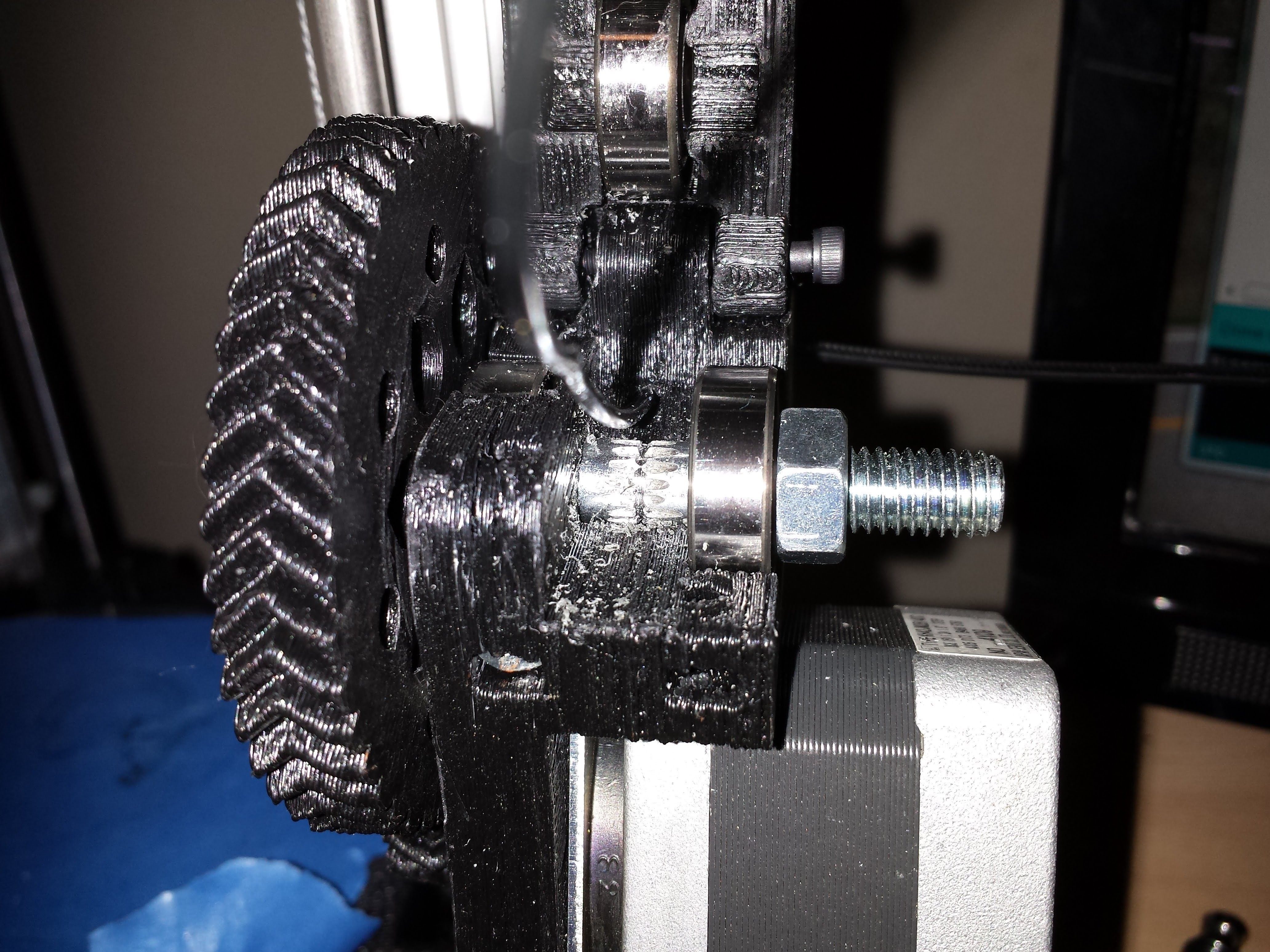 It’s the standard 3DR Bowden setup, one of the debug issues is working out the tensioner as I had real problems getting one of the trapped nuts into the base without it delaminating. I get the impression a properly running system wouldn’t need a lot of pressure to drive the filament, especially with the aggressiveness of the drive bolt.