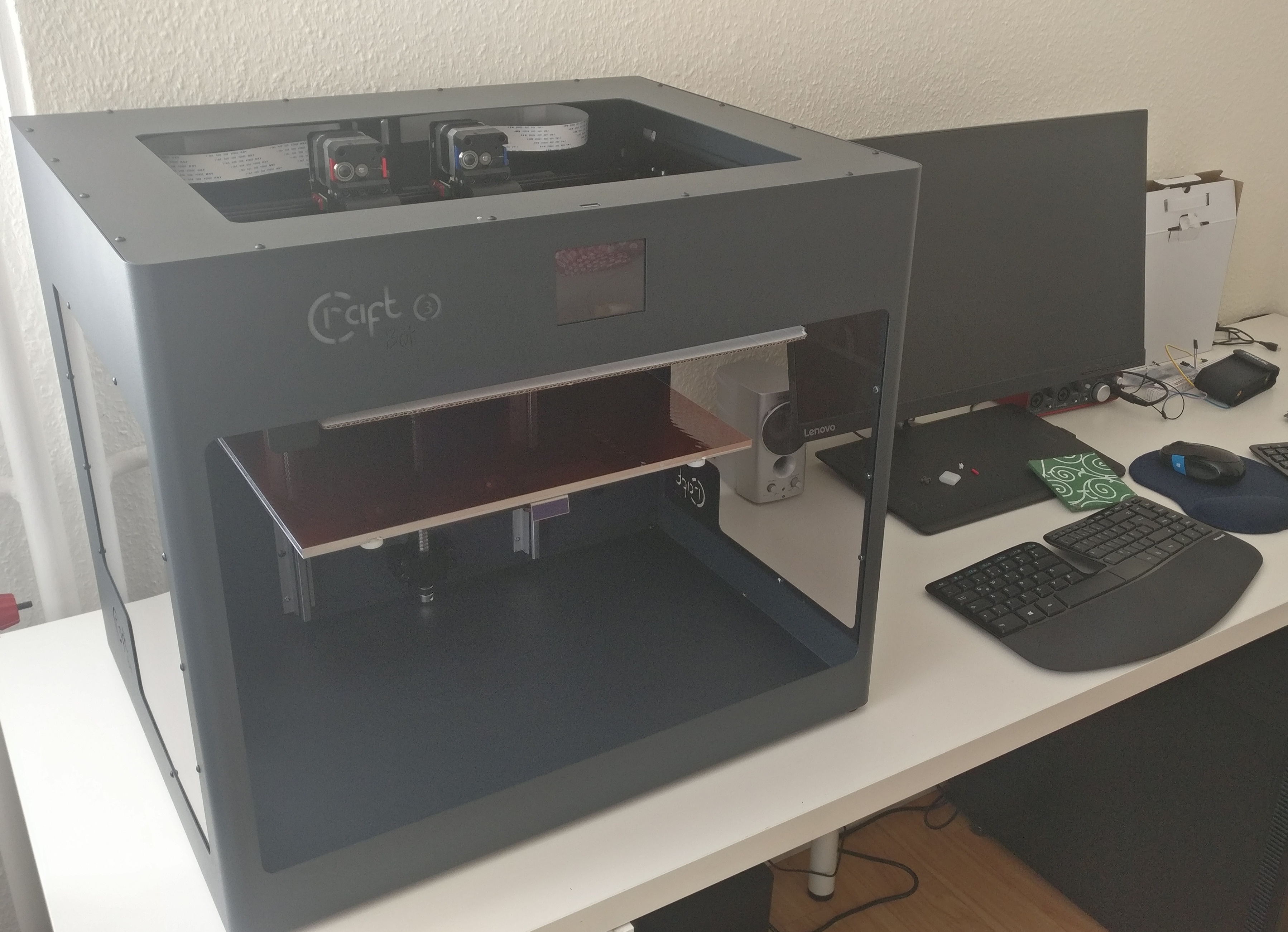 So here we go. The CB3 finally arrived here. They changed the eye on the side but not the rest. Currently printing a calibration part.