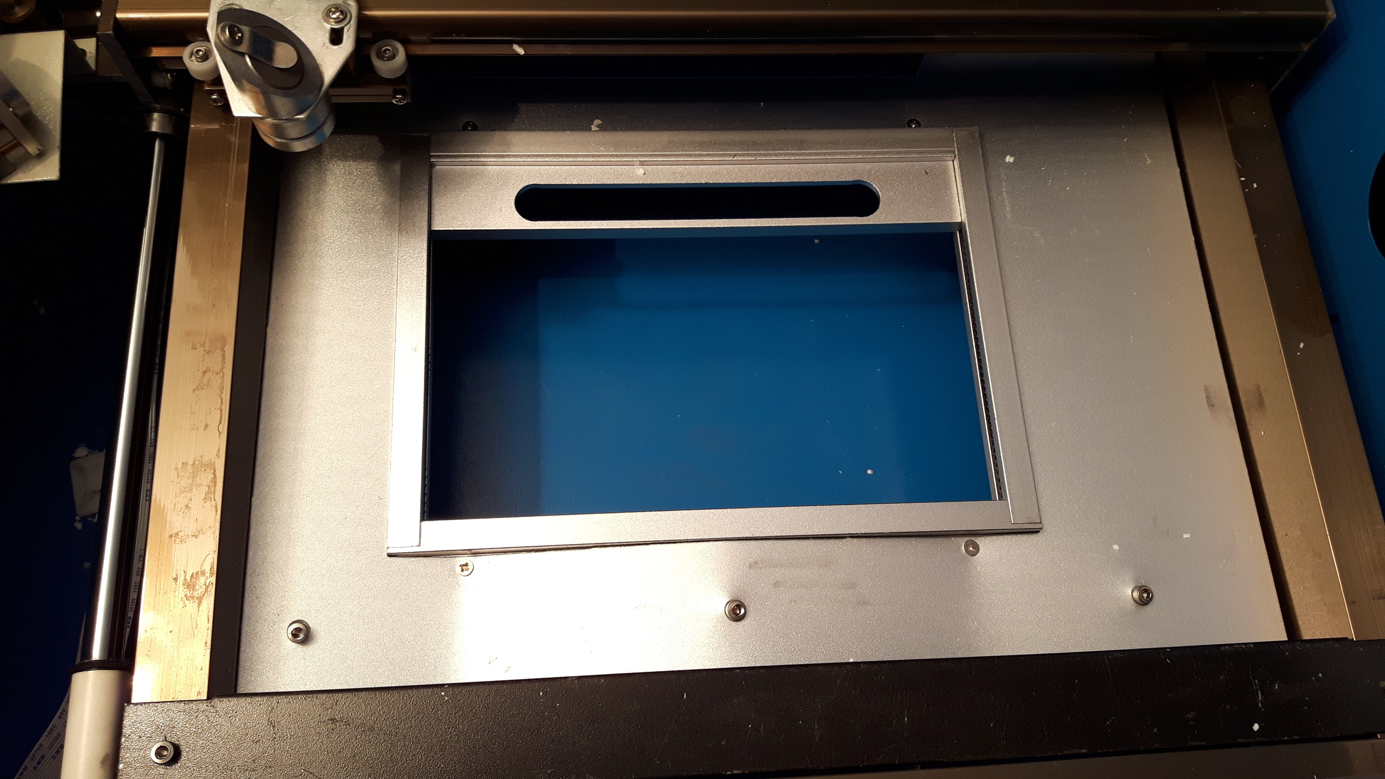 take the all x/y assembly out, remove the bed and make yourself a new one with honeycomb (at focal point hight). Most important is check your x/y assembly is square, and parrallel with tube when refit.