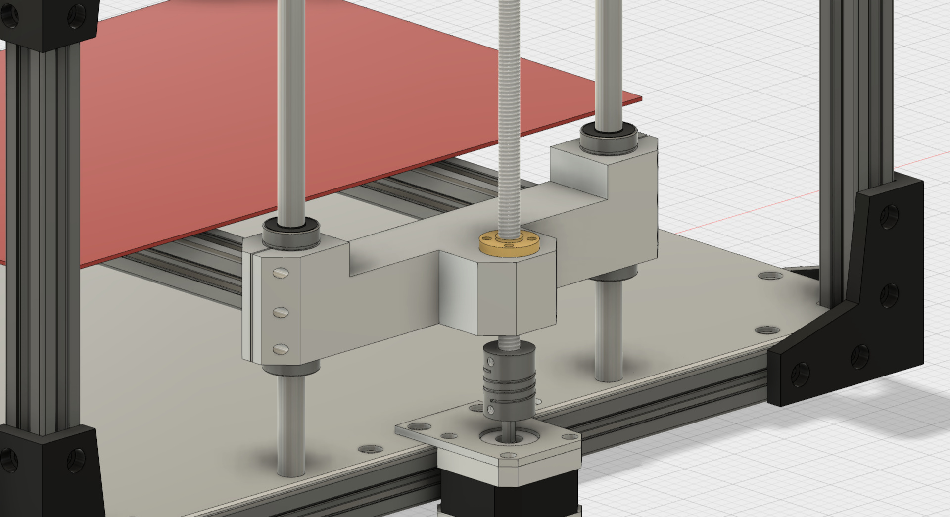 I would suggest at least 16mm rods. Lead screw behind the rods will also add unnecessary stress to the cantilever action. I would suggest moving the rod mounts on the outside of the extrusion. Looks good, 3d printed parts or milled aluminum?