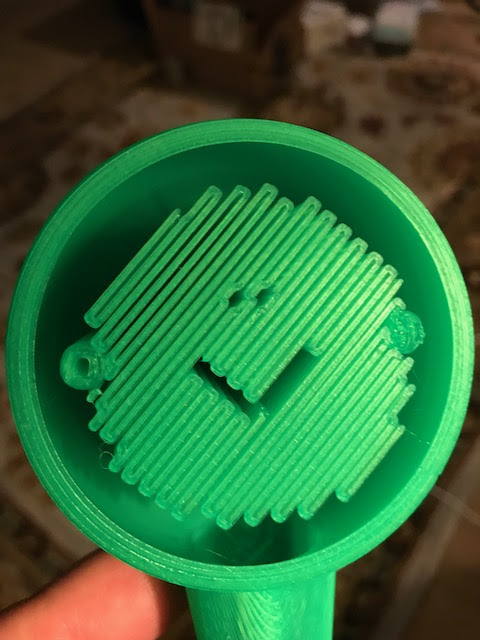I printed this part I’d made that has about half of a sphere on top. I’d printed face down with supports. Imagine the surprise I had when I’d lifted it off the print bed, turned over, and had the smiley face staring at me!?