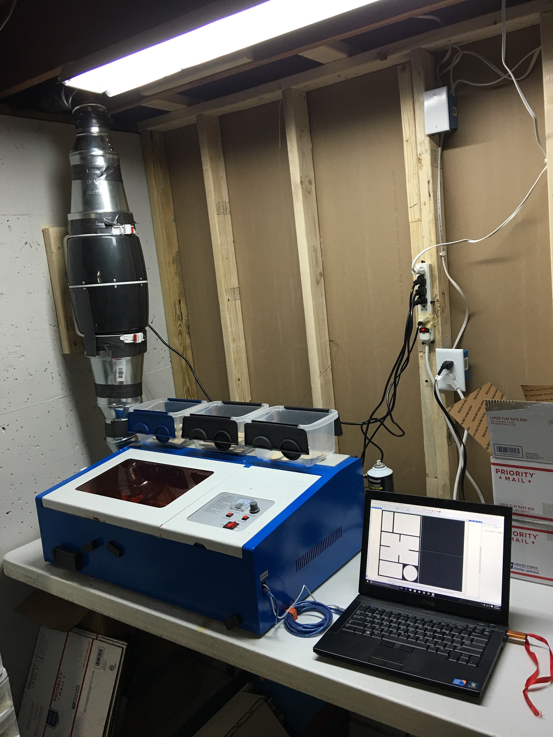 If you’re ambitious and have a outside wall in your laser room, or nearby, you could install a dryer vent kit to draw in your fresh air directly to your laser. That’s really the right way to do it, but few of us go through the effort. (I did do it for my pellet stove though - required for code)