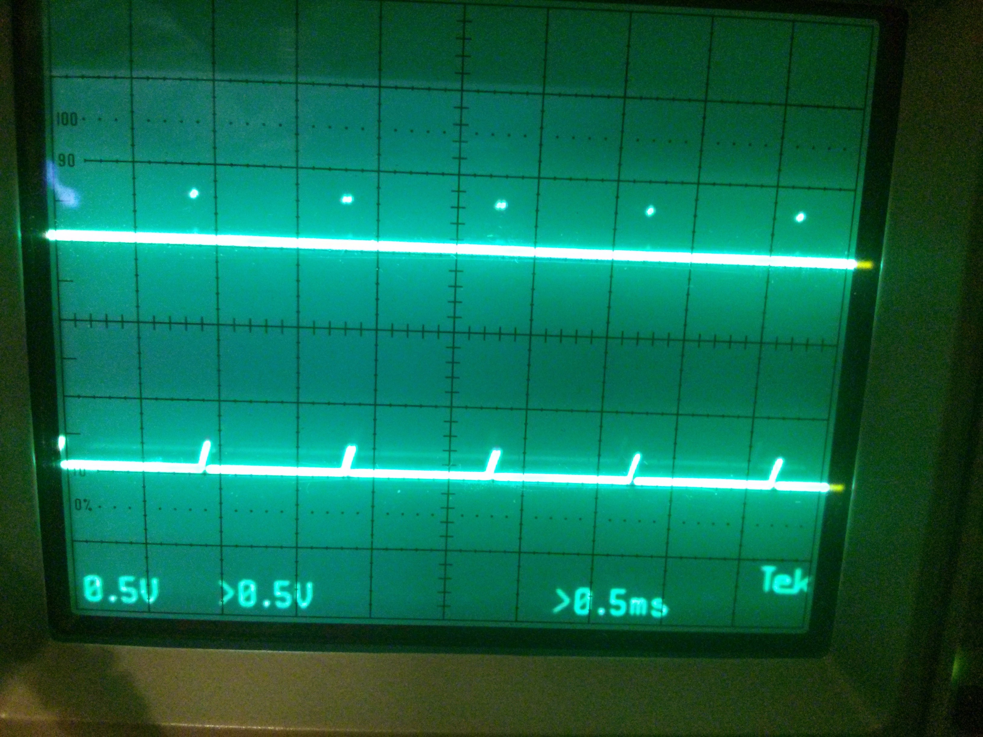 Here are two images of my oscilloscope, the two lines on the screen show the arduino end step output and the driver end step input. In one they are the same, because without the opto-isolator it’s just a direct wire connect. On this configuration everything is fine.