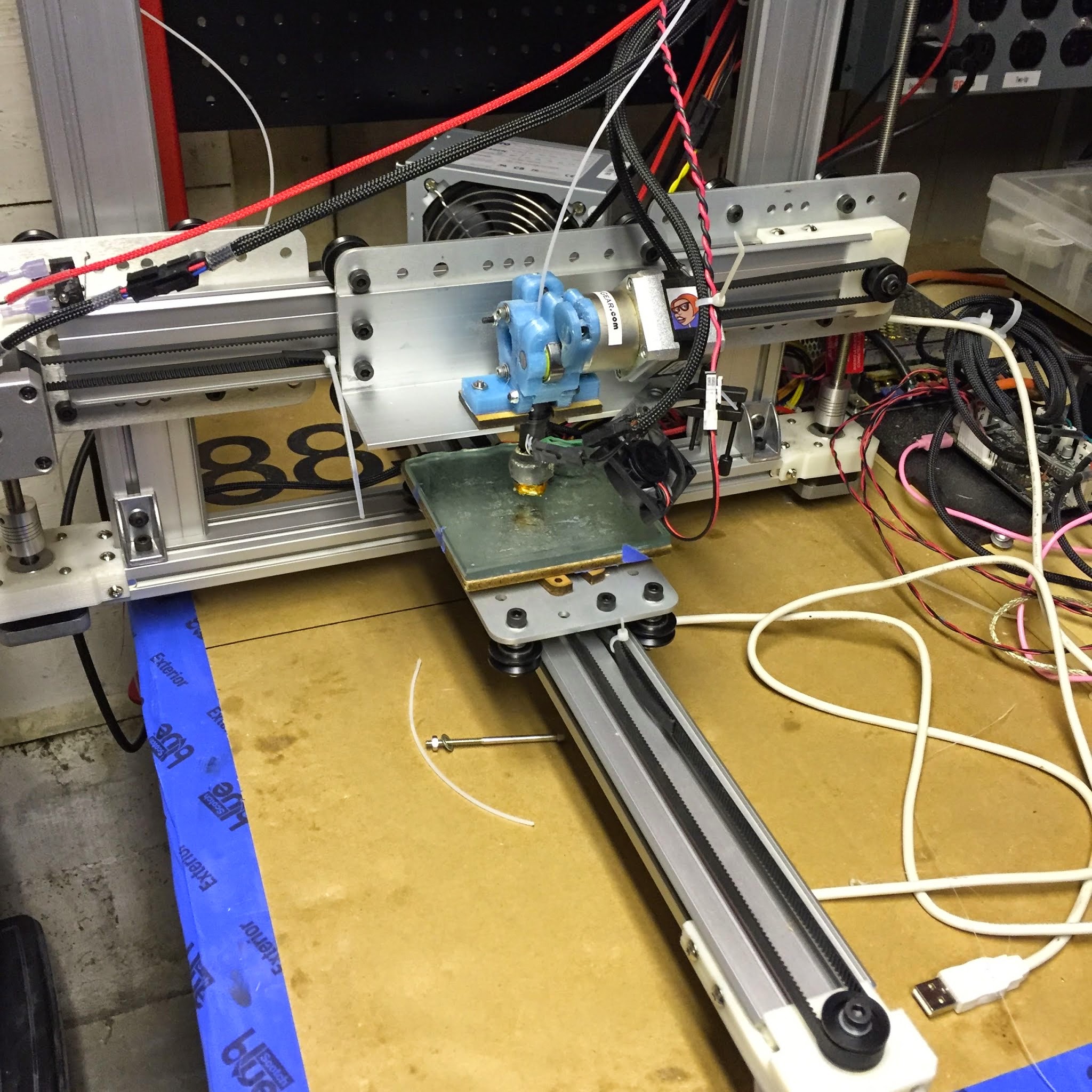 @Jeff_DeMaagd you are correct. It is based on http://www.thingiverse.com/thing:19297 “Mike’s ORDish Bot”, with liberal use of stock makerslide hardware and printed ordbot upgrade parts from thingiverse. I will try to clean up the bench and get some better pictures of it.