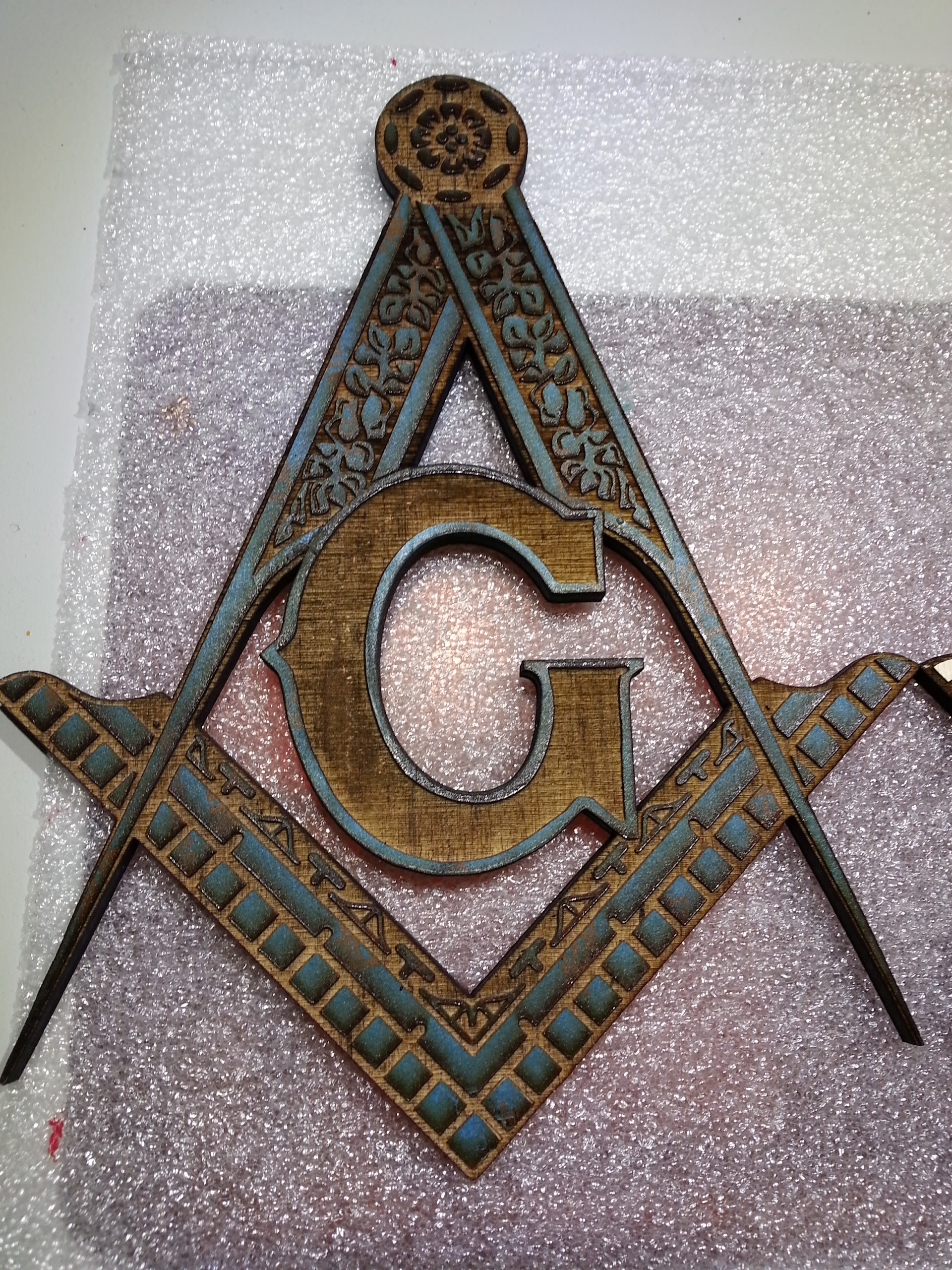 So several months ago I had engraved and cut out a pair of Masonic emblems from a sheet of 1/4" Birch ply I had gotten from the local big box hardware store. The coloration of engraved area came out kind of blotchy and uneven. Really didn’t like it so I just set them to the side leaving the masking on. Since the masking was still on I decided to try the polyshade spray technique that I had shared earlier, from an OP on facebook, to darken and even out the engraved area. It worked like a charm. I used two moderate coats as it doesn’t really build up that fast compare to something like spray paint. #K40ShopTips