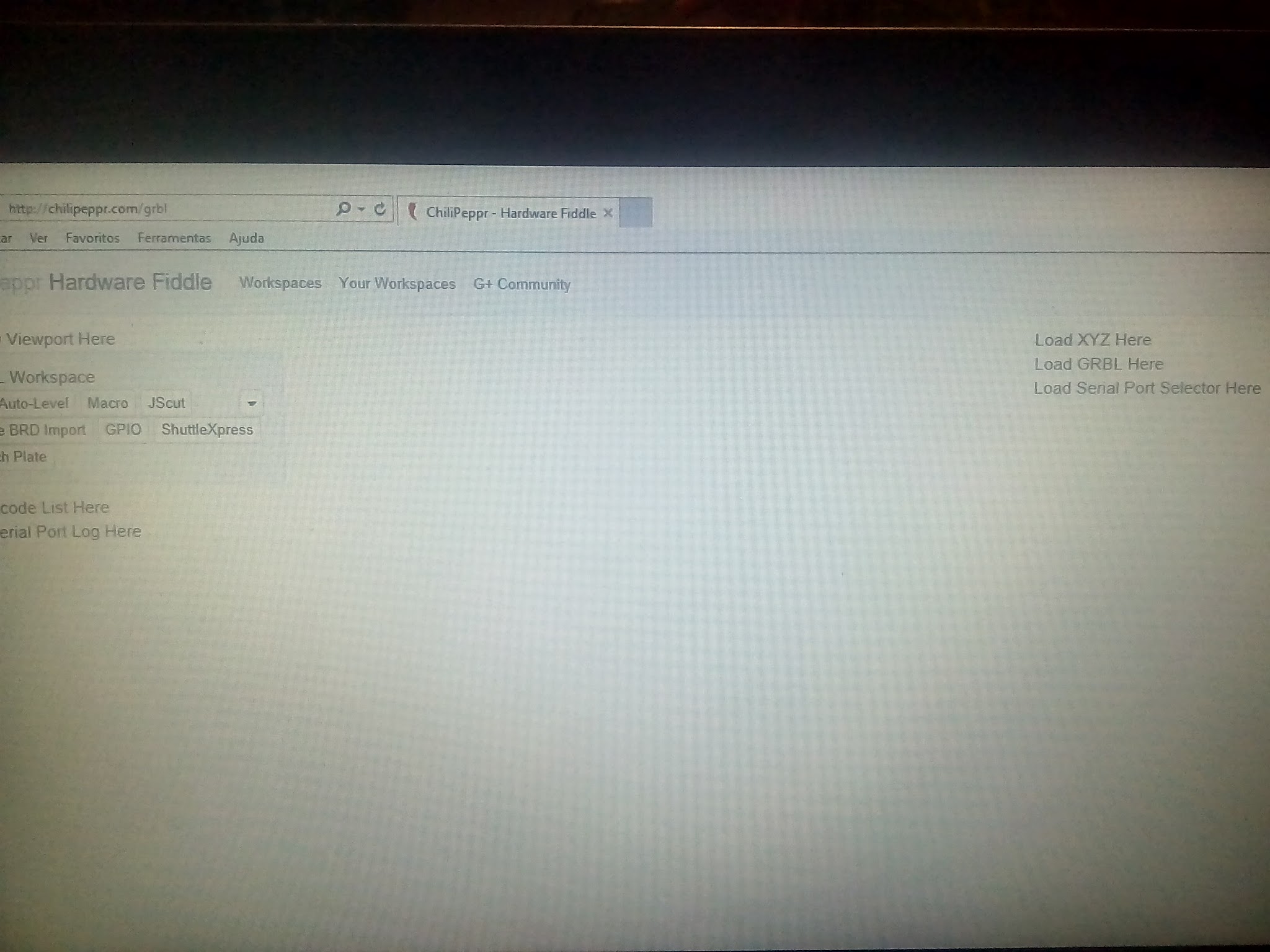 I just checked and the GRBL workspace loads for me fine. You should try clearing the cache or doing a force refresh (Shift F5).