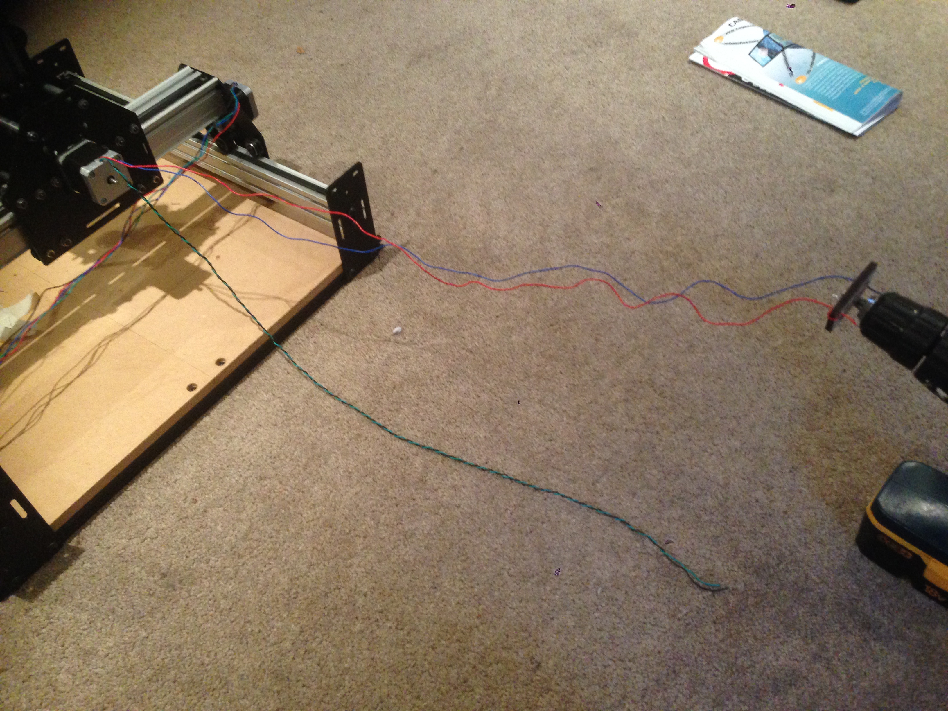 So the Shapeoko2 arrives with loose wires on the stepper motors, and from the learnings from building a 3D printer, noise can make a big difference to the final product and performance of the stepper motors. So twisted stepper motor wires are called for!!