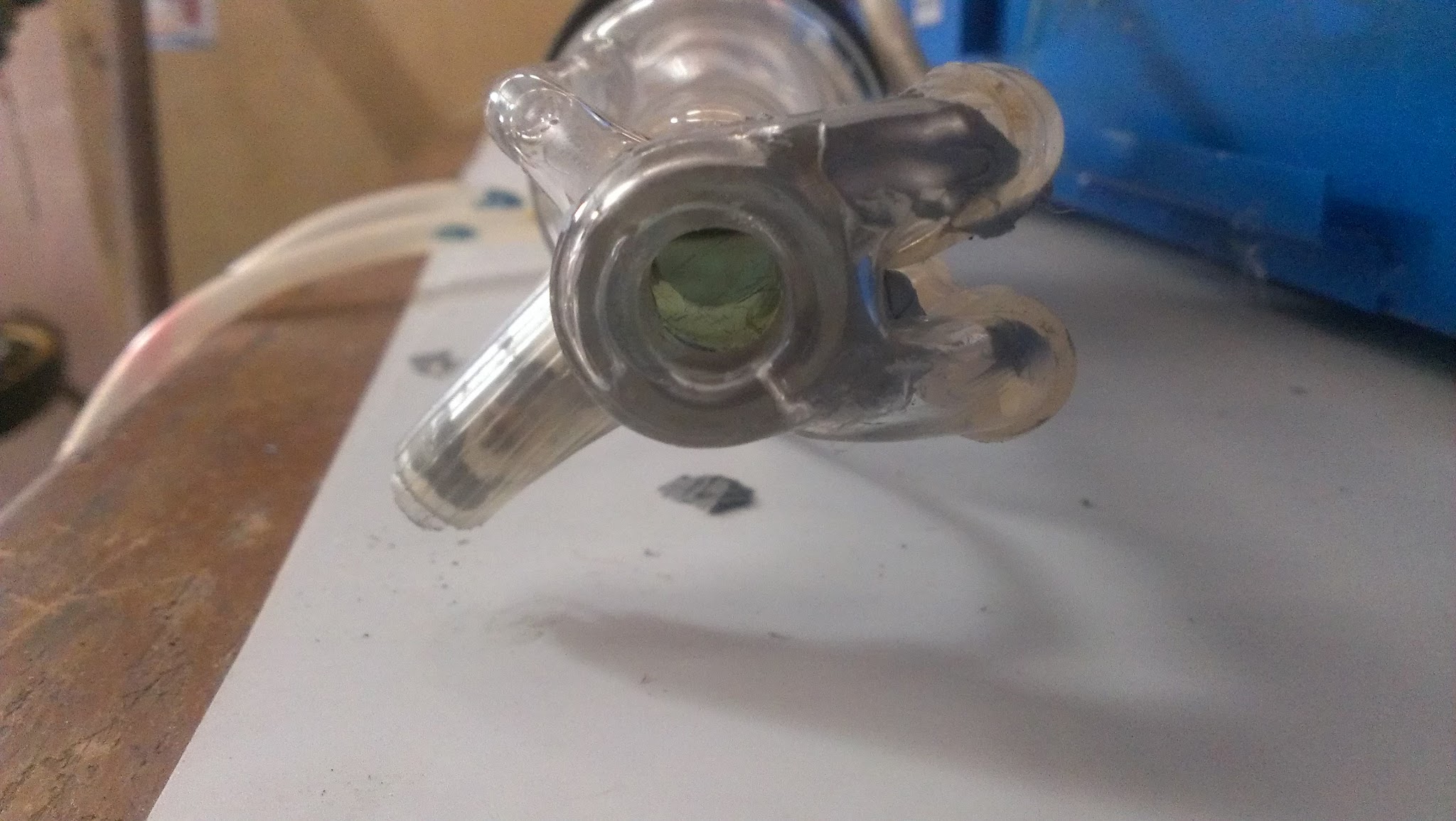 Were you trying to run cold water through it? If you were, the heat from those terminals + the cold water can cause the glass to crack.