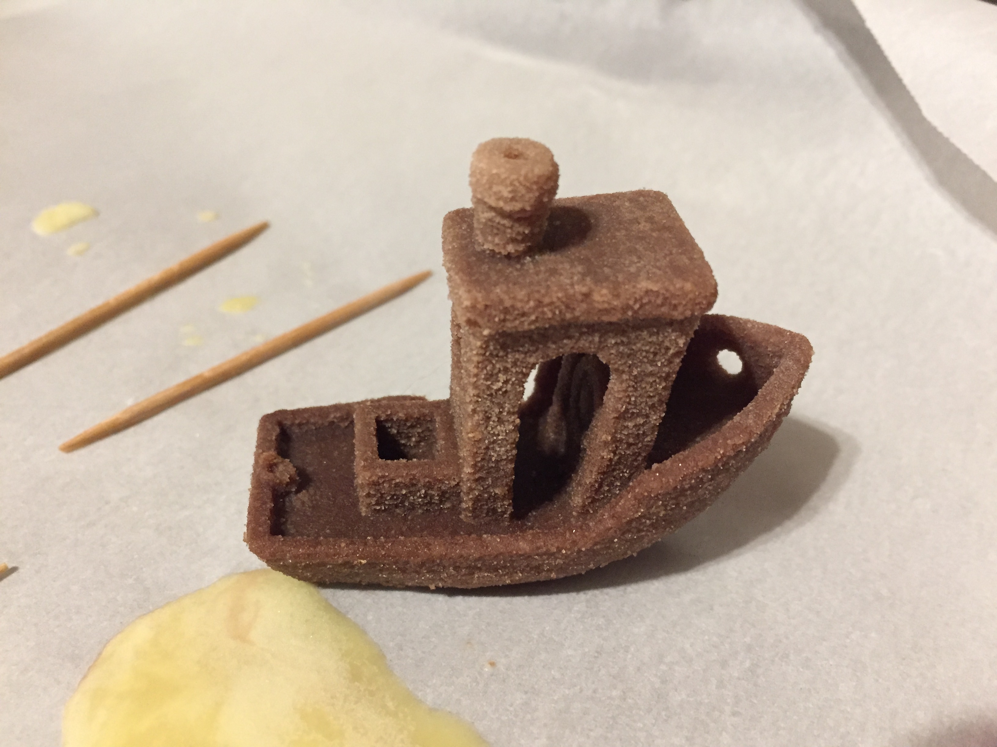 Some 3D printed (powder bed) tests on my Z310 with sugar and cocoa powder.