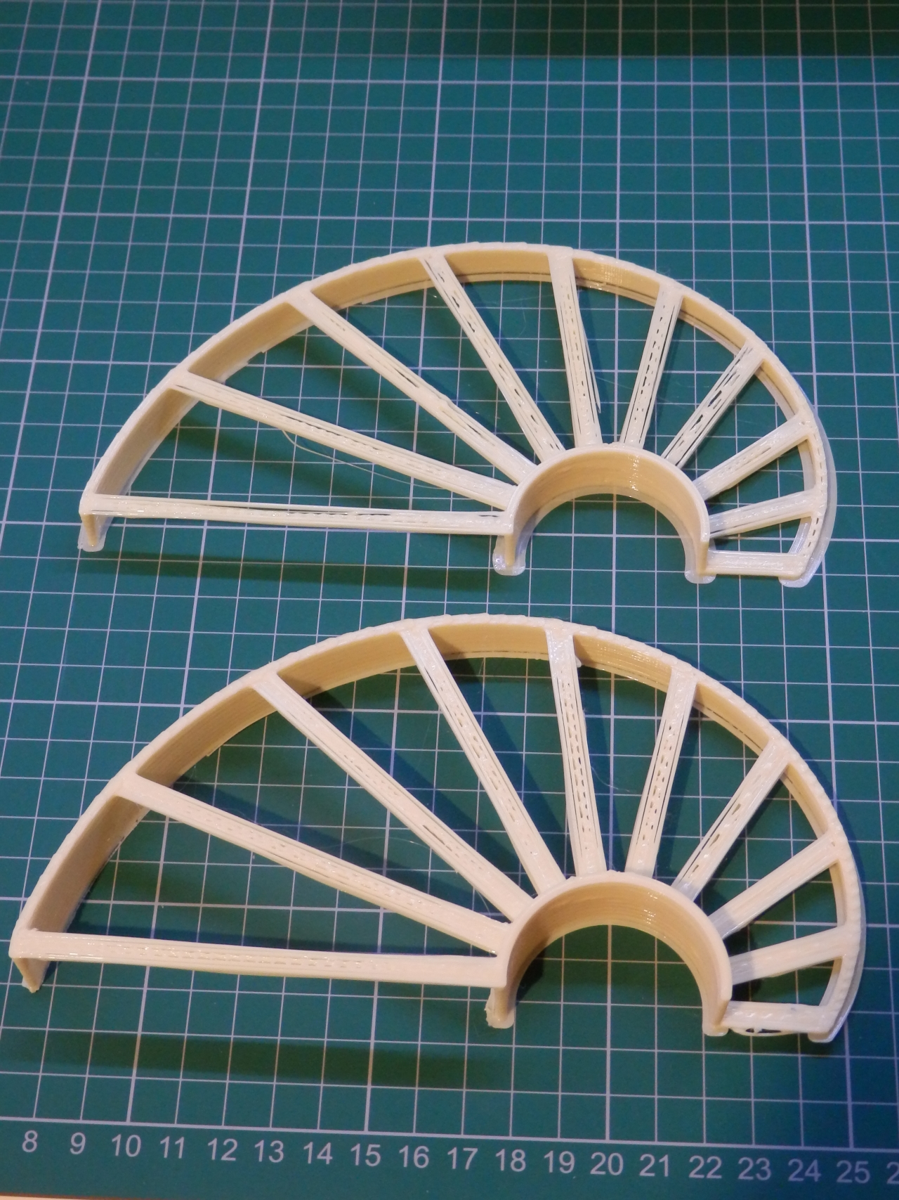 The buttercream print at the bottom of the image uses two perimeter outlines, it’s interesting that this produced a slightly better bridge, this had very little actual material using the ‘bridging settings’.