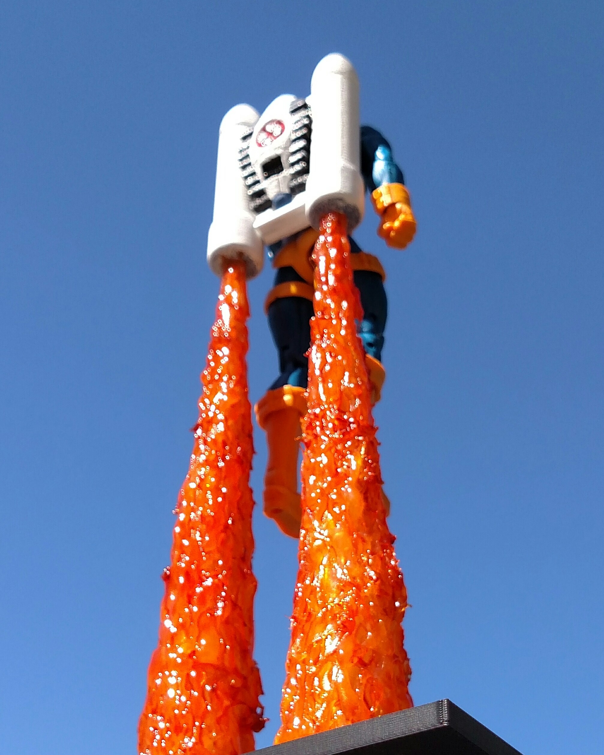 @Holger_Weingartner I printed the blast flames as a smooth cone and then textured it with a hot glue gun. Then I painted it with Tamiya transparent orange paint.
