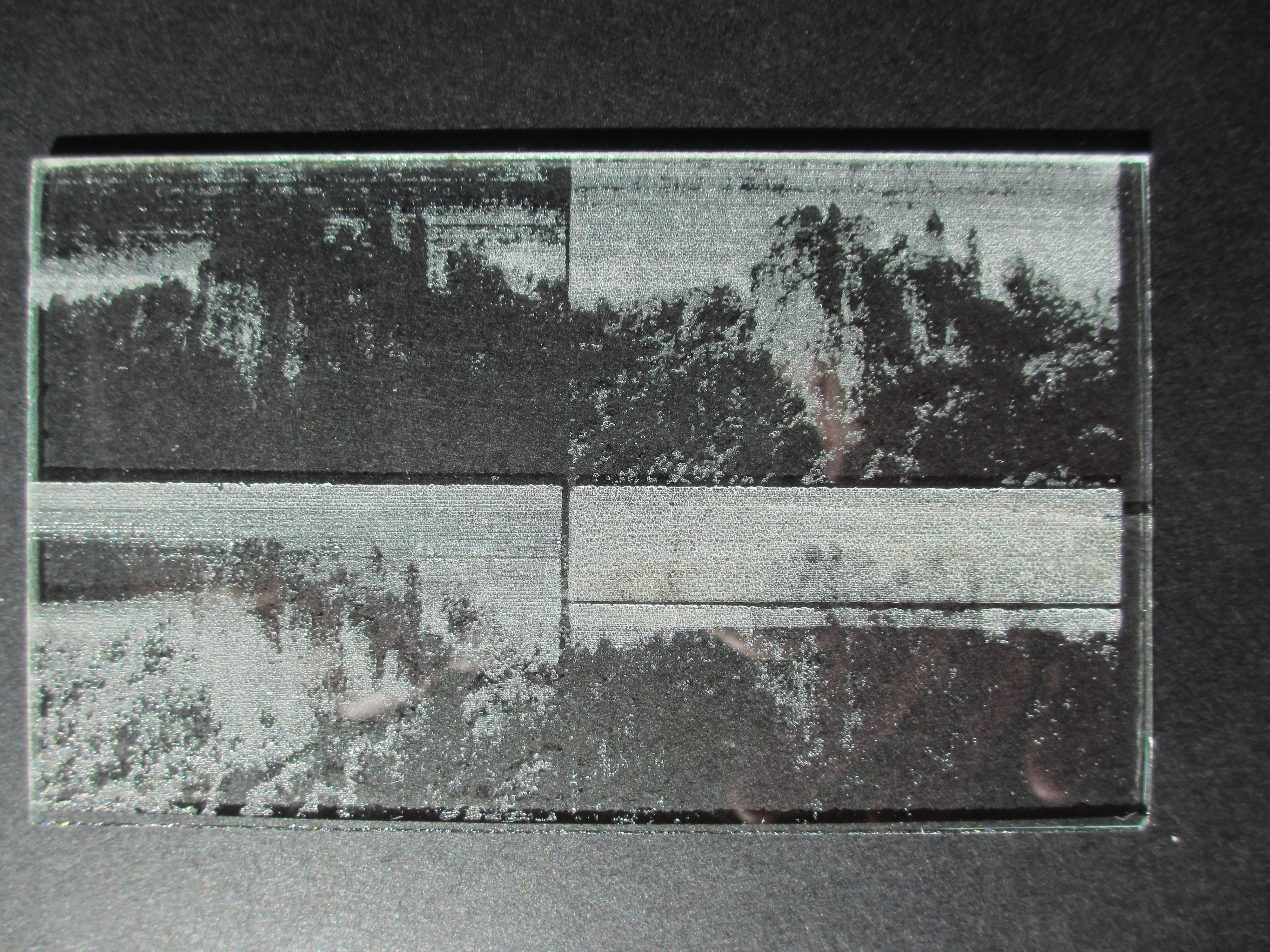 I forgot to invert the photo and show the back side of the glass, but these are just to try and beat the software in to submission and get the right speed and power settings.