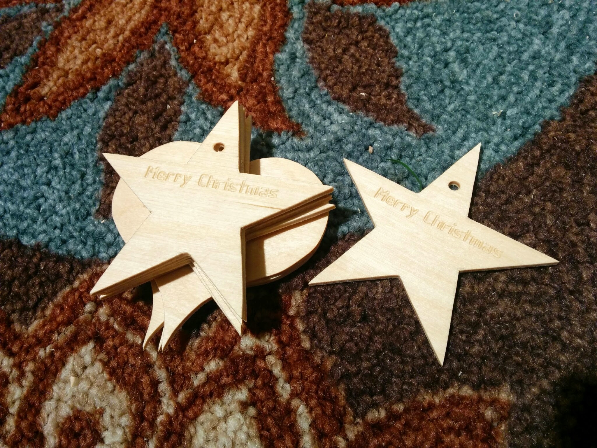 Some simple shapeoko Christmas ornaments made for a client. All of them are 1/8" thick plywood. The black one is 1/8" thick black acrylic.