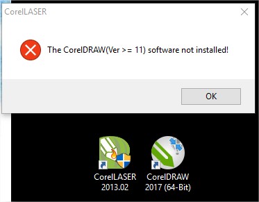 If you installed CorelDraw after installing CorelLaser, try reinstalling CorelLaser. The error looks like it is looking for CorelDraw Ver 11.