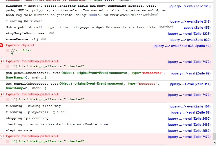 Something are complete wrong in all Workspaces. Please check this out: * load workspace, drag and drop a eagle brd file and i get a lot of Javascript errors. may somebody work on central js files? Also i get a ajax error message that some files can’t load??
