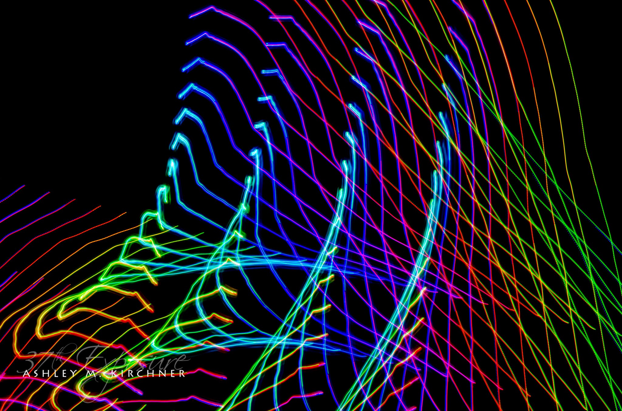 - one Mega328p - FastSPI_LED2 - 4x one meter long strings of 32 pixels each, all doing a fast HSV2RGB rainbow cycle. Shot between 1/6 to 1/4 seconds long @ f29. There’s a whole lot more pictures, I just picked a few of them to post here.