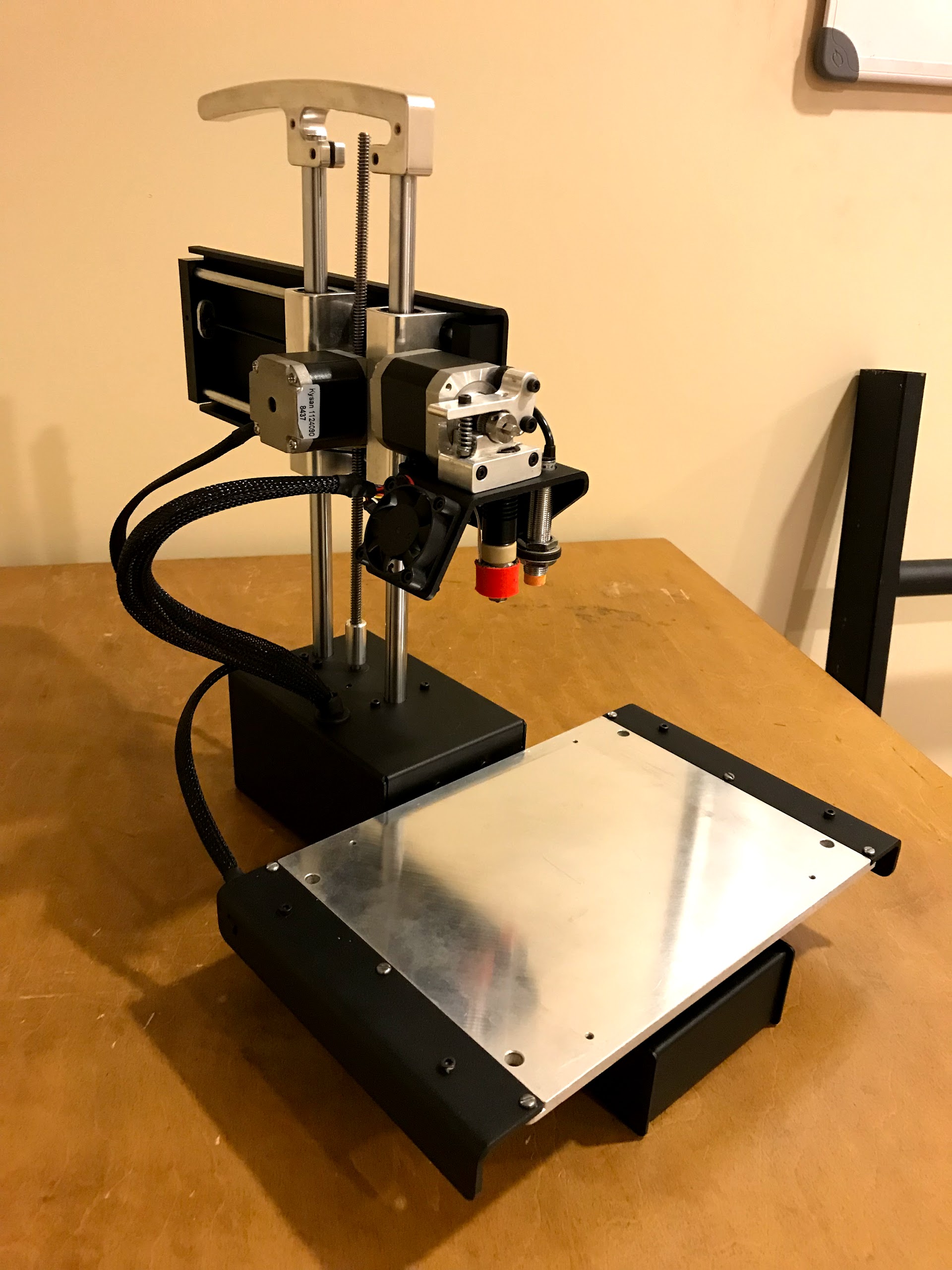 Spent my first sick day of the year restoring the Printrbot back to a clean little machine. I took a few hours to tear it completely down and clean all the parts, and then reassembled with a few minor changes. The cable mesh and bed setup were also slightly modified as I felt like it needed a few personal touches. I’ll be adding a fan duct and PEI print surface soon, as well as swapping out for a Stealthboard.