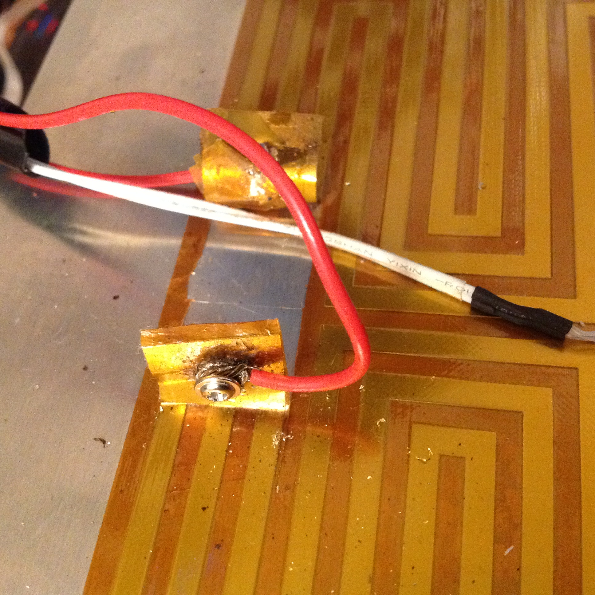 it’s really hard to solder to those heating elements. I had the best luck with silver solder and a tiny bit of acid flux from a stained glass kit. Clean it well after soldering. I use very fine multi-stranded wire with a high temperature silicone insulation, it’s very soft and floppy and good for 20Amps. It’s sold at hobby shops as the RC battery leads for electric cars and airplanes. I then tape down about 2" of wire to the heater with kapton tape to act as a strain relief for the solder joint.