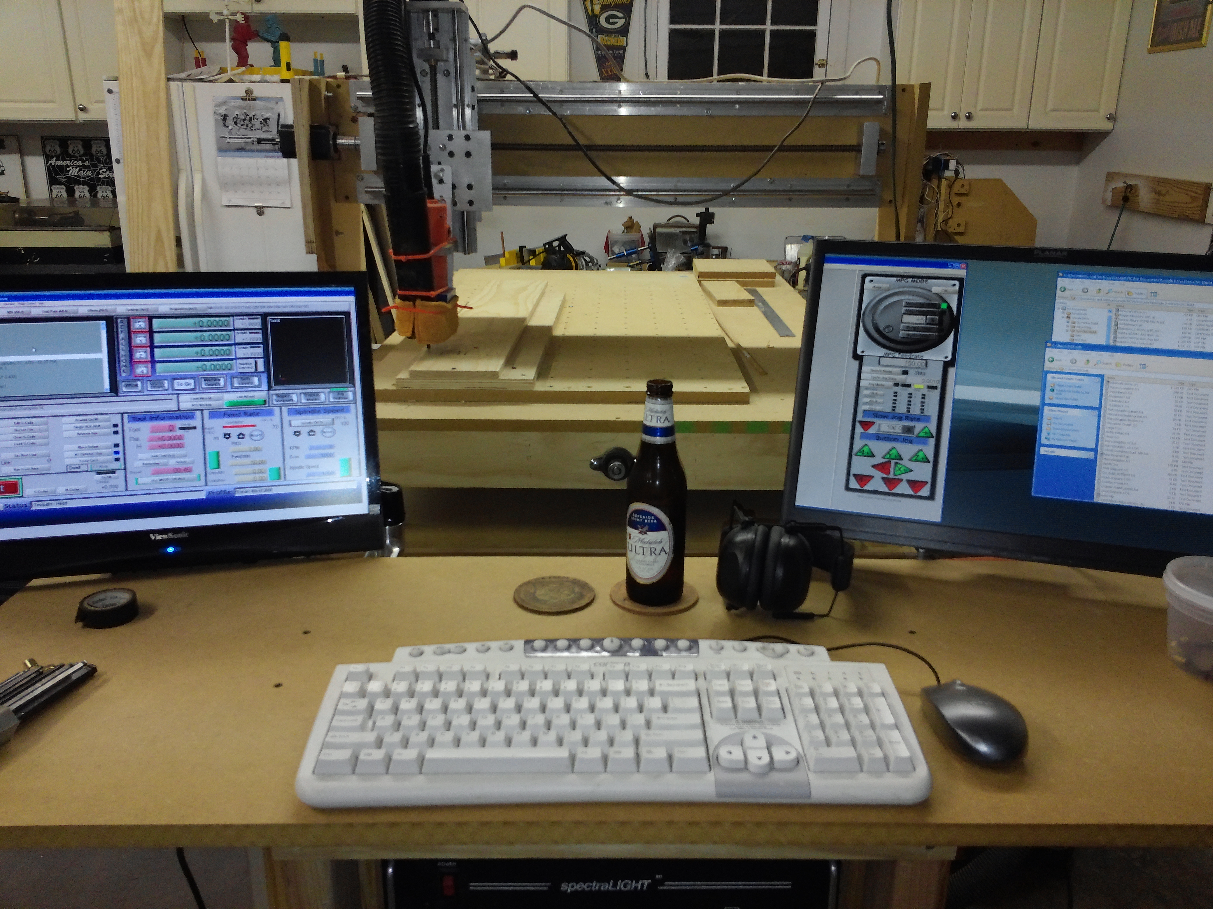 Started out the evening ready to make stuff, then my wife wanted me to come hang out with her, so moved my web cam to the shop, grabbed a laptop, and sat down with my wife, while monitoring the router (With a remote session to mach3 in case of problems), now accomplishing both.