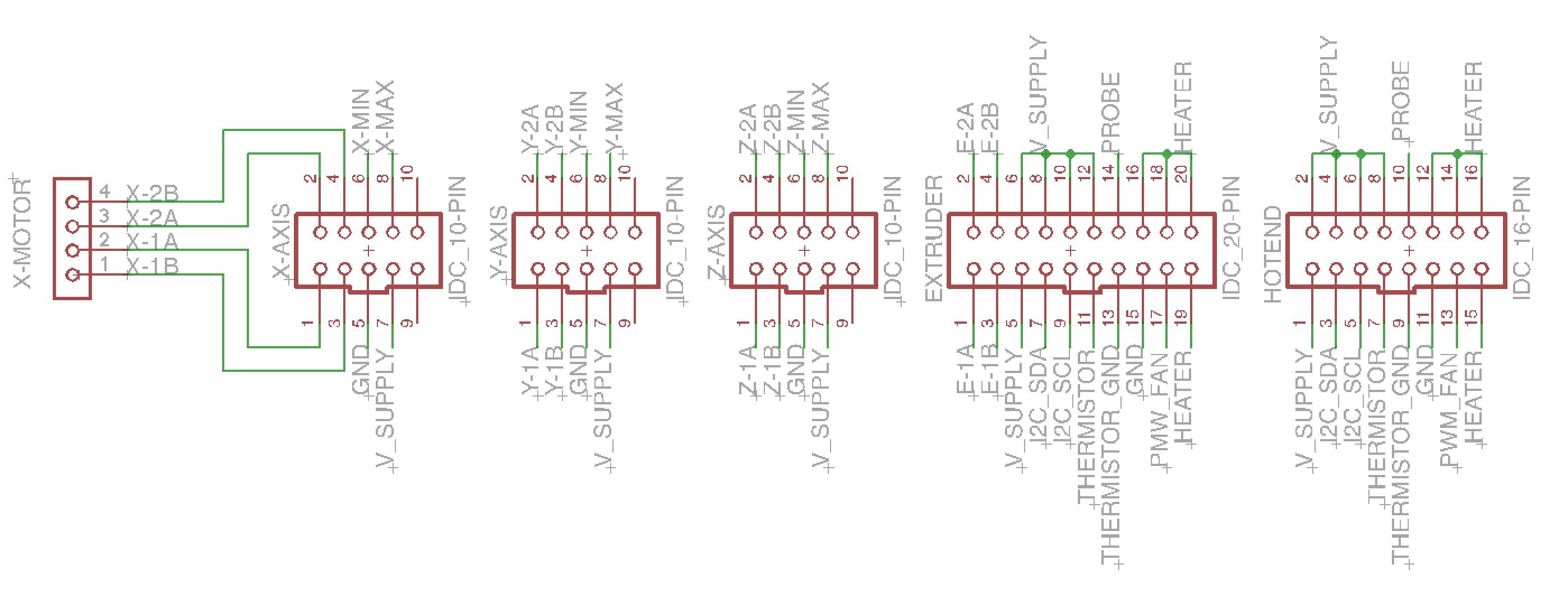 So in summary for X, Y and Z we have a supply rail, end stop microswitch to Gnd or magnetic/inductive sensor with V+.