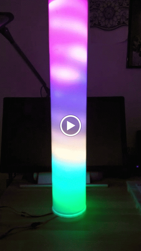 Yesterday, I made one similar and ended up wrapping 1m of 60 LED/m around a Christmas wrapping tube. I use a single 18650 battery, so power draw is a consideration (average was 200mA). The diffuser was one of my bamboo lanterns, covered with tissue paper. In order to get the swirly effect, the distance between the LED’s and the diffuser is very important.