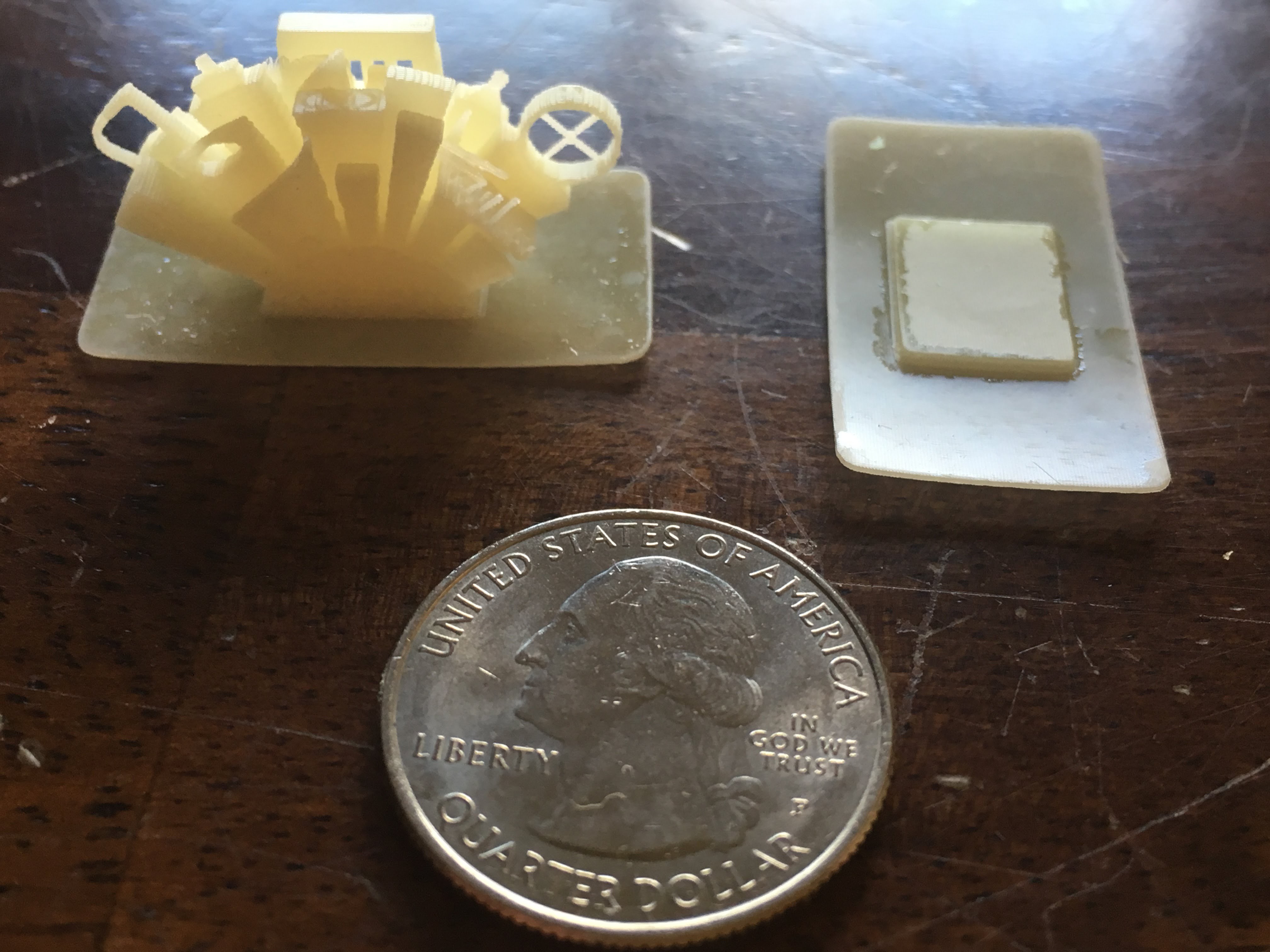 Unfortunately, when it comes to third party resins (green in the images), I haven’t been able to get a successful print. I have used the curing settings given to me by other backers (Morpheus beta testers) but still the prints stick to the film, not the build plate, resulting in a failed print.