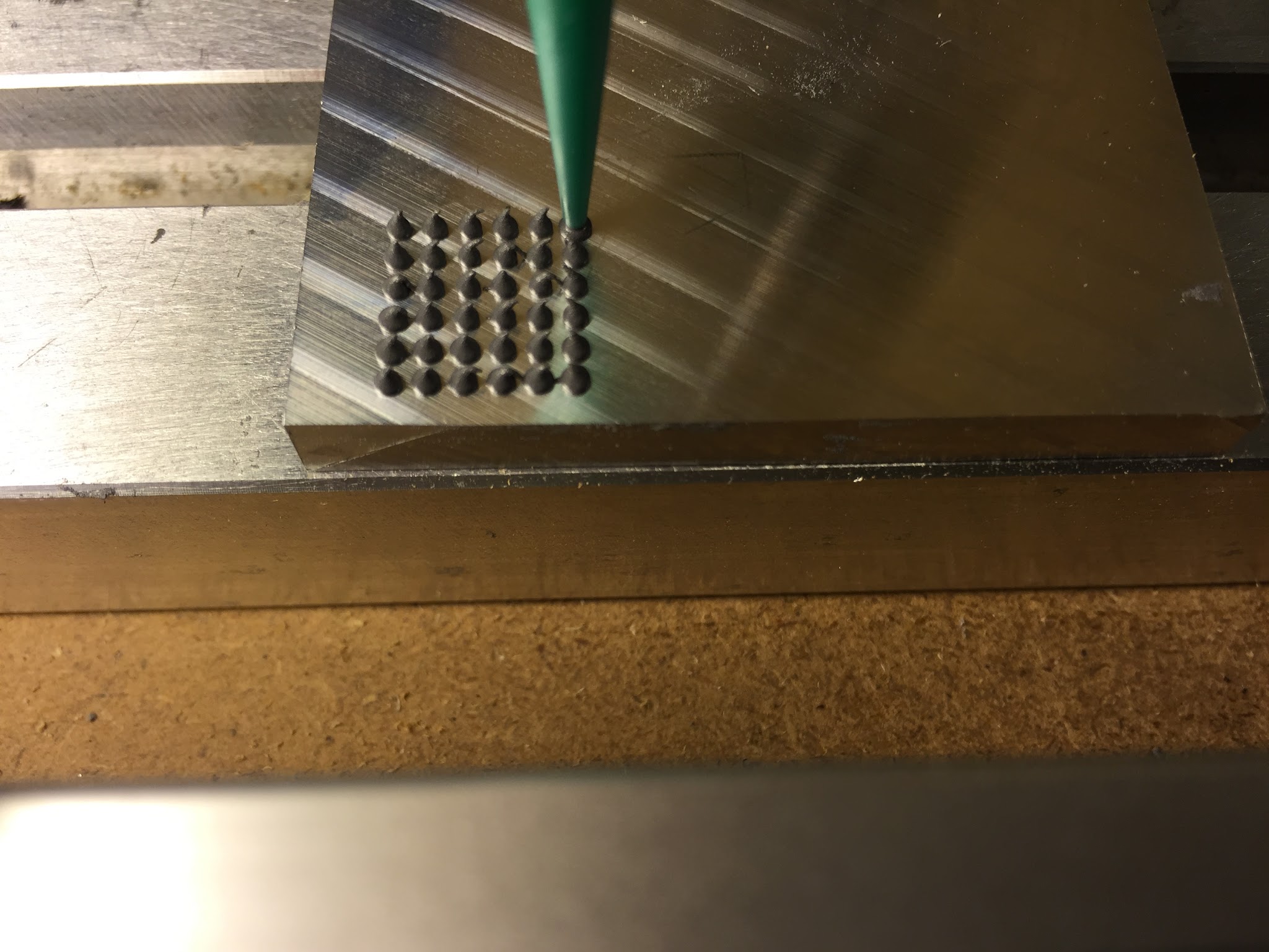 Sure, thats a 0.84mm inside diameter canulla. First i try to make matrix with different press moves. The center of points have a distance of 2mm. The matrix are 10x10mm.