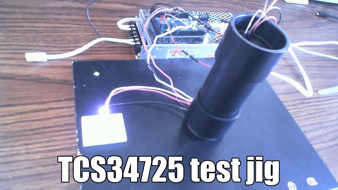 Following Jon Burroughs suggestion, I purchased a ‘RGB Color Sensor with IR filter - TCS34725’ from Adafruit and put together a jig made of some ABS pipe and couplings to create a mini dark room. I downloaded the Adafruit’s TCS34725 library and put together a test sketch that drives the LED under test through brightness values 0,1,2,4,8,16,32,64,128, 255 for colors RED, GREEN, BLUE and WHITE. This actually tests that each brightness bit is working properly in the LED’s PWM internal circuits. For each step in brightness, the sensor measures the light intensity of all 3 RGB colors and White color. I actually push the data to 2 devices to also verify the data out of the LED under test and that also gives me a visual of the test in progress.