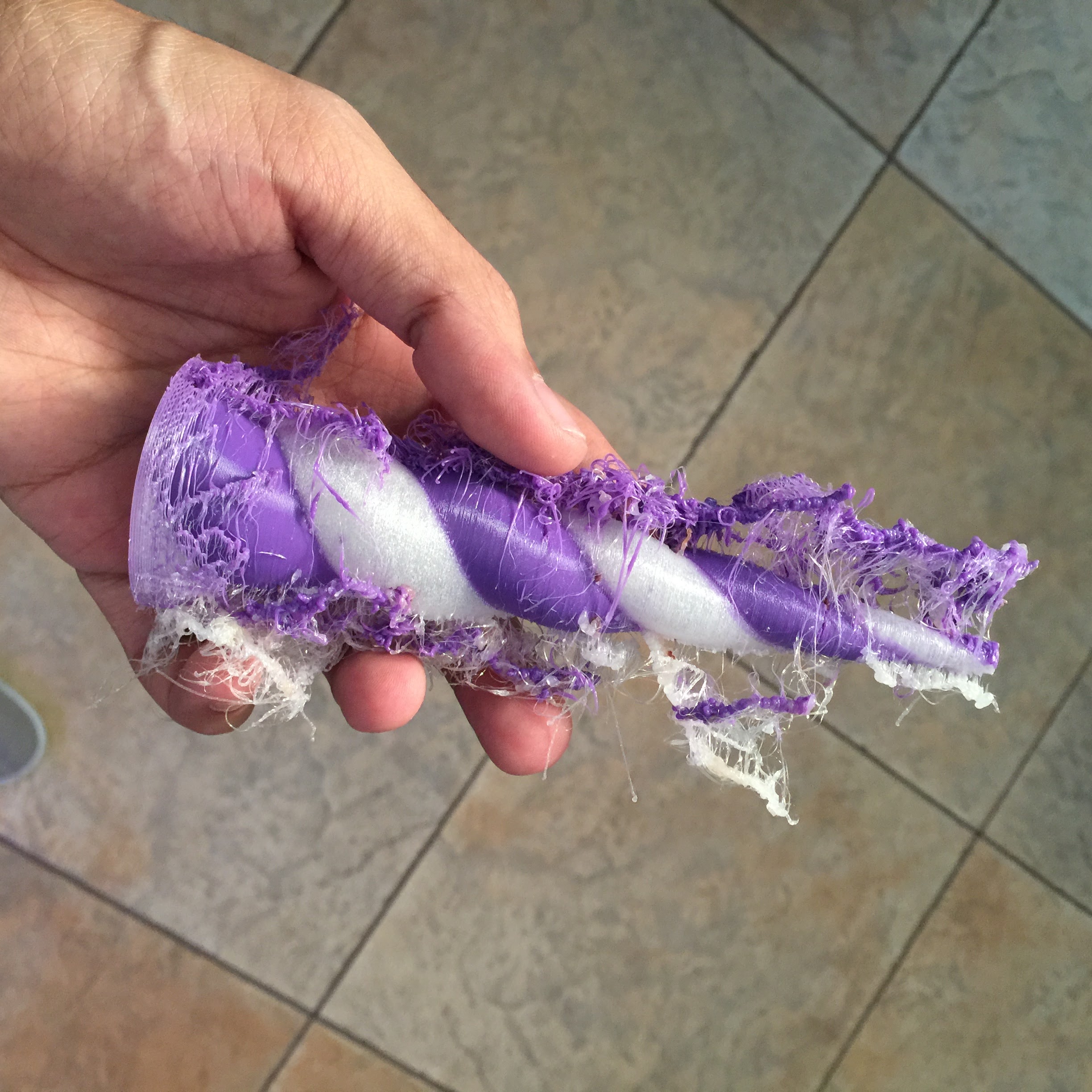 Testing out dual extrusion with two-color ninjaflex using simplify3D. Trying the ooze shield feature. Printed on a flashforge creator pro.