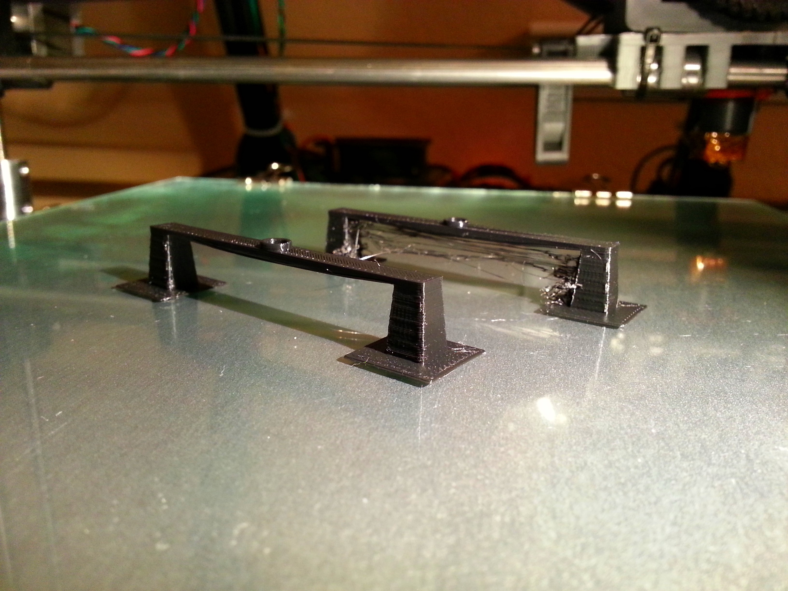 Testing out slicing with Cura on my MendelMax. Looks like using the retraction setting makes a huge difference. Adios strings!
