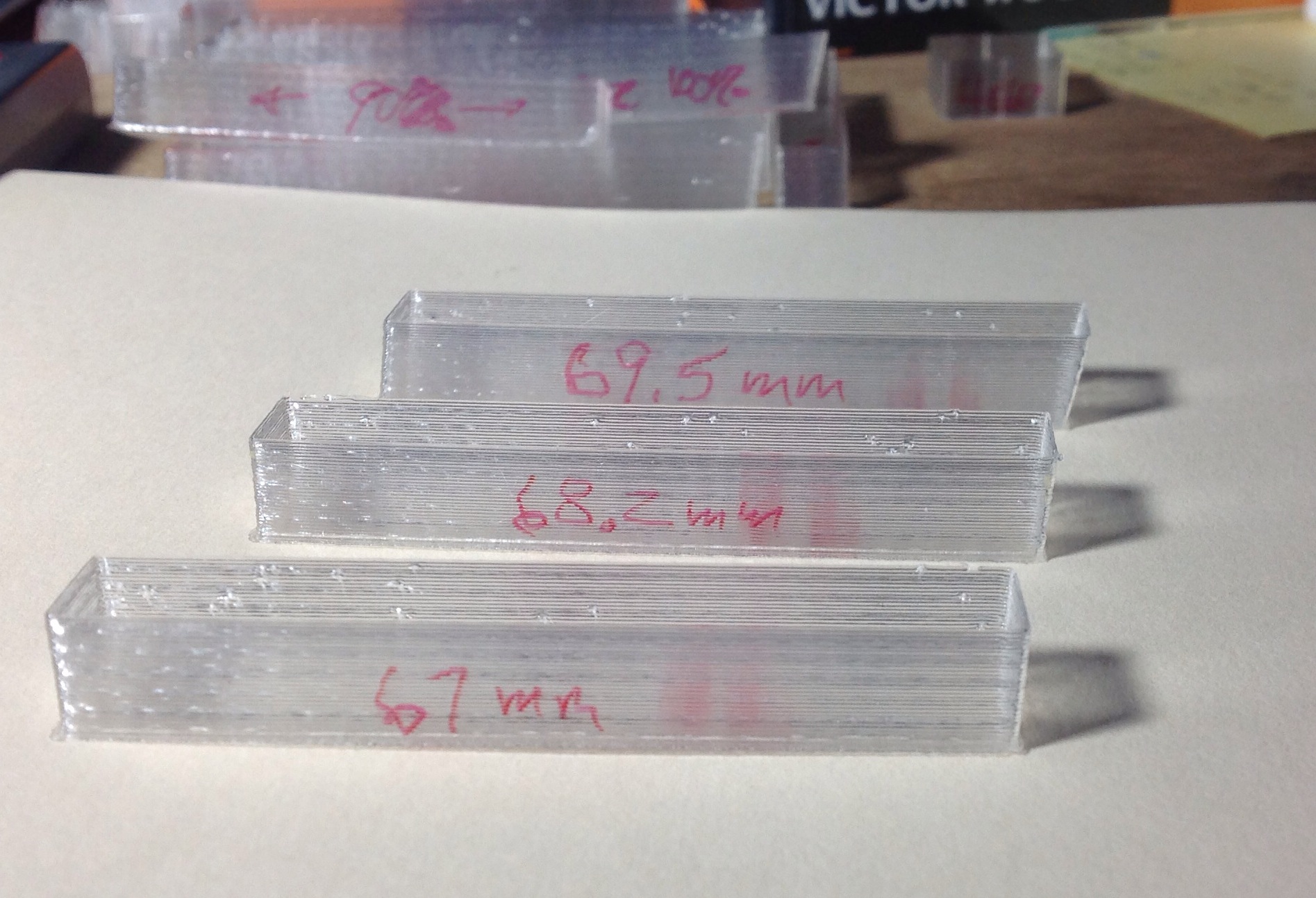Just printed two “proof” tests using four 20mm squares arranged at the bounds of a 60mm square and bounds of a 70mm square. The 60 has vertical walls but 70 slants.