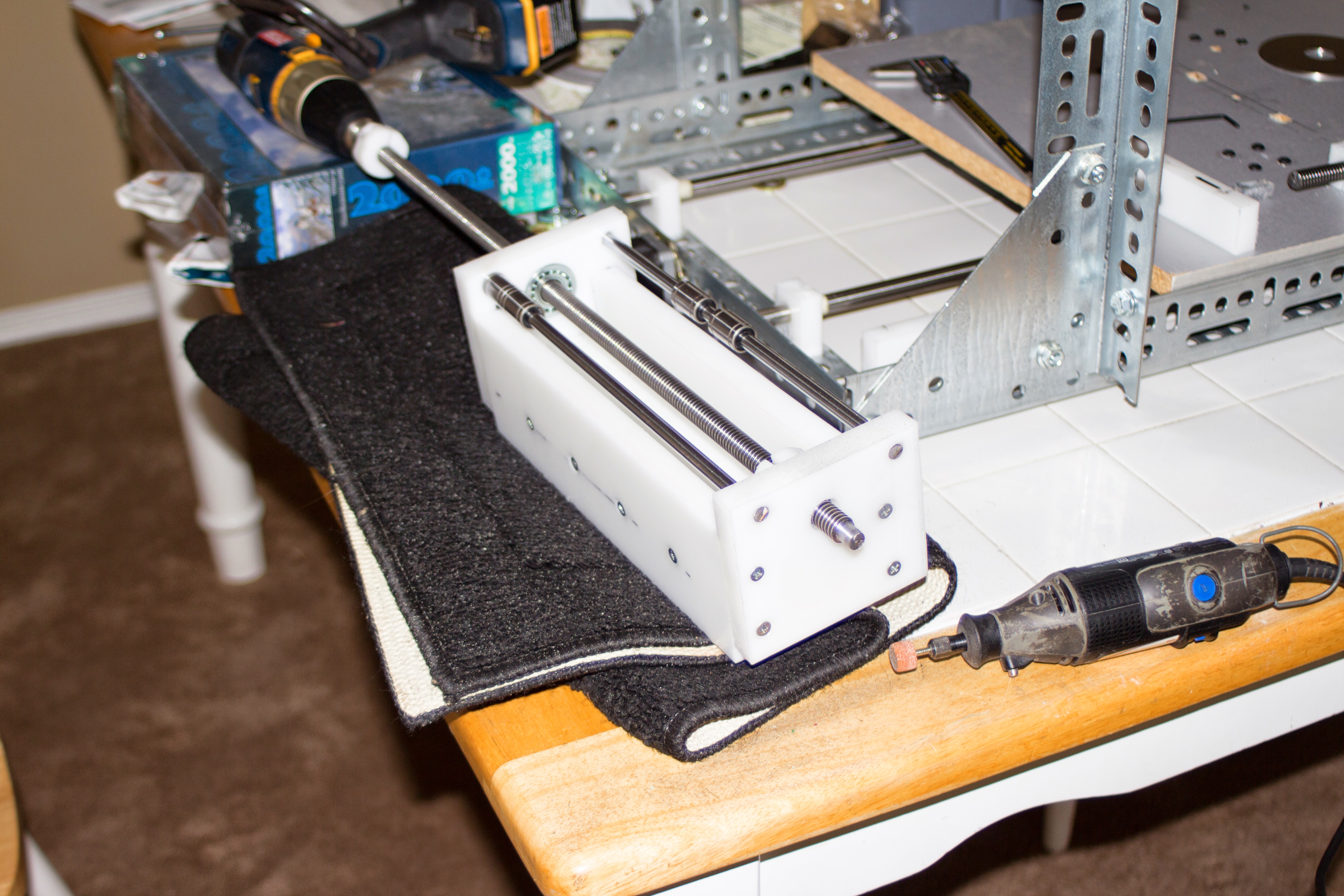 The rug under the carriage is for noise isolation; the rotating screw when contacting the dremel made vibrate the carriage and then the table. It worked!