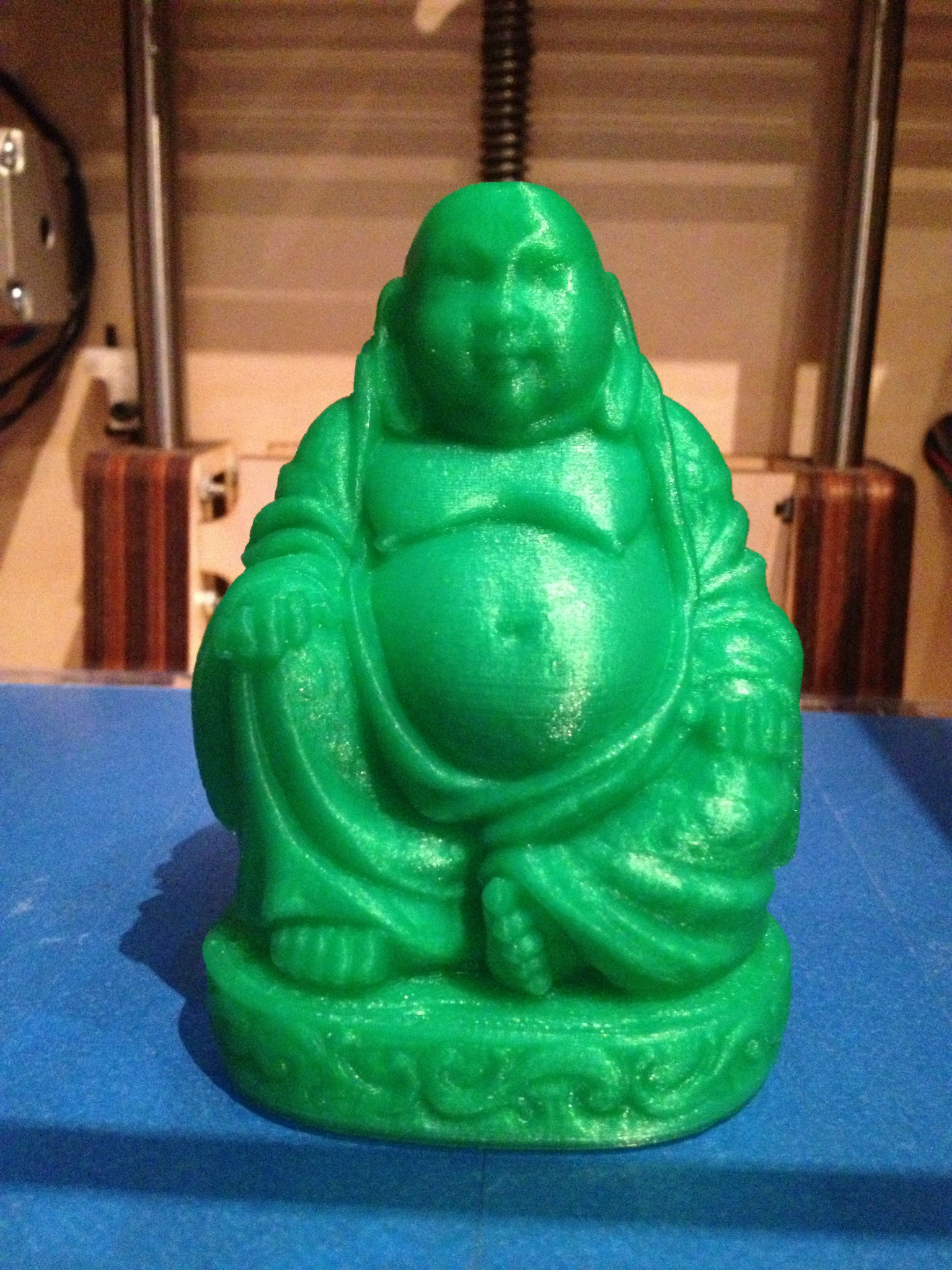 Printed on an +Ultimaker with 0.15mm layers (0.075mm skin) in Ultimachine green PLA. For some reason, I had the feed rate set down at 65mm/s so it took about 6.5 hours to print… Came out nice, though.