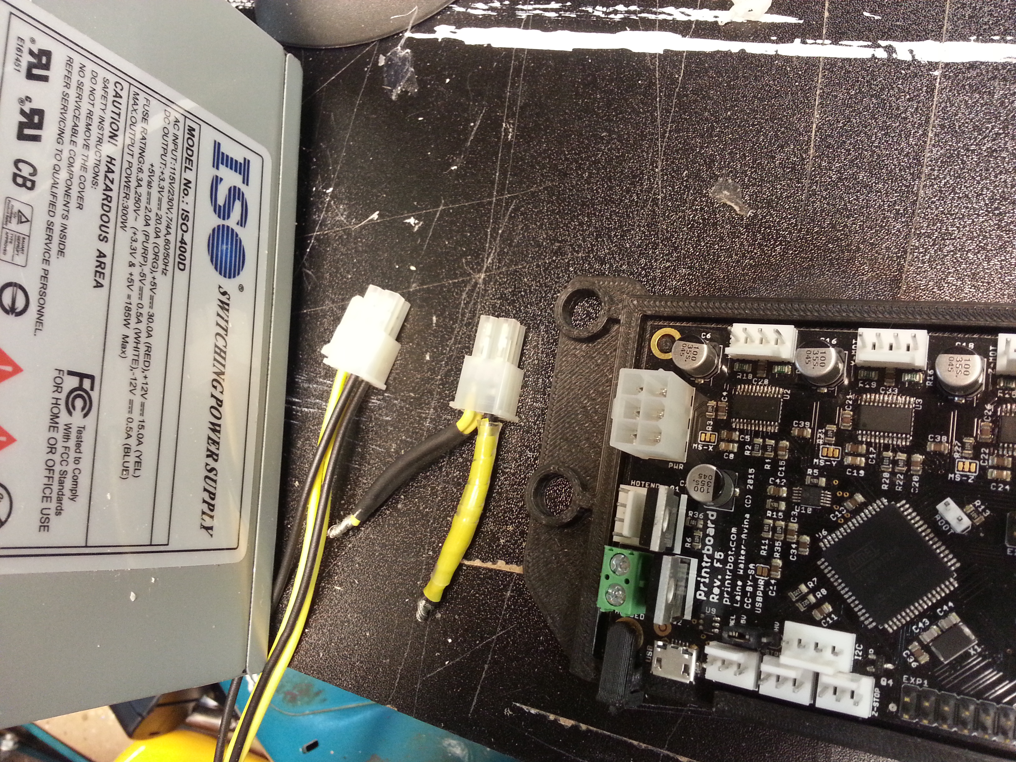 Powering my #frankenbot through the hacked cable in the picture, I had run some test leads from an ATX supply converted to bench power supply, but the leads were too thin and the voltage drop caused weird behaviour once everything was up and running.