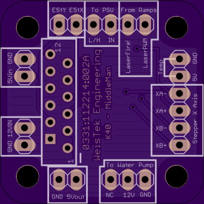 ESty and EStx are endstop connections connected to Smoothie Xmin and Ymin respectively. You have to decide how you provide 5V and grnd to the middleman (I plan to use 5v and grnd from the Xmin connector).