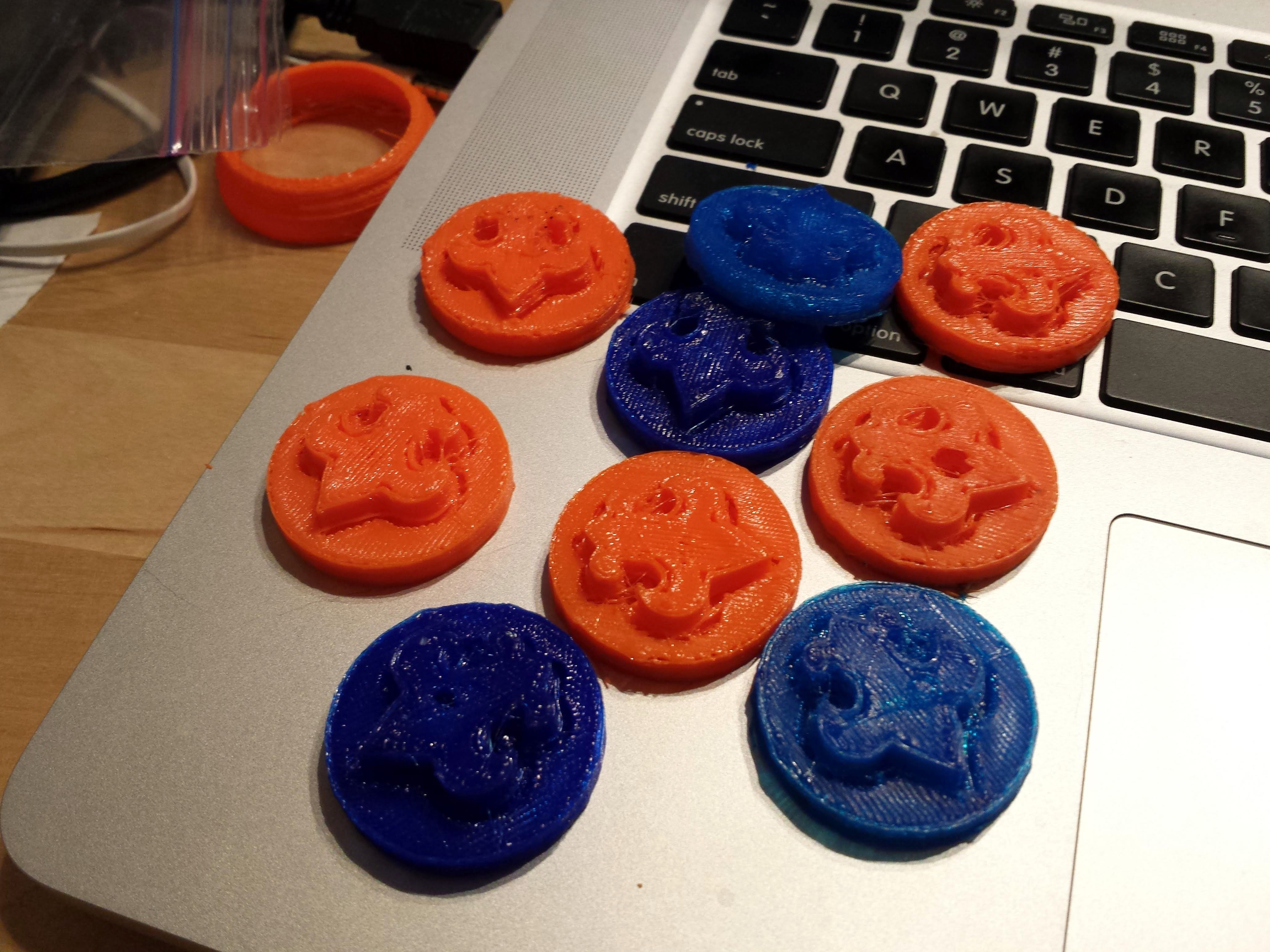 Printer’s been going all night, done 5 coins with nary a failure…what’s odd is: I haven’t had to do much of anything the the glass. Printed a Minion this morning (2 hour print) and the coins tonight, and I haven’t had to reapply hairspray.