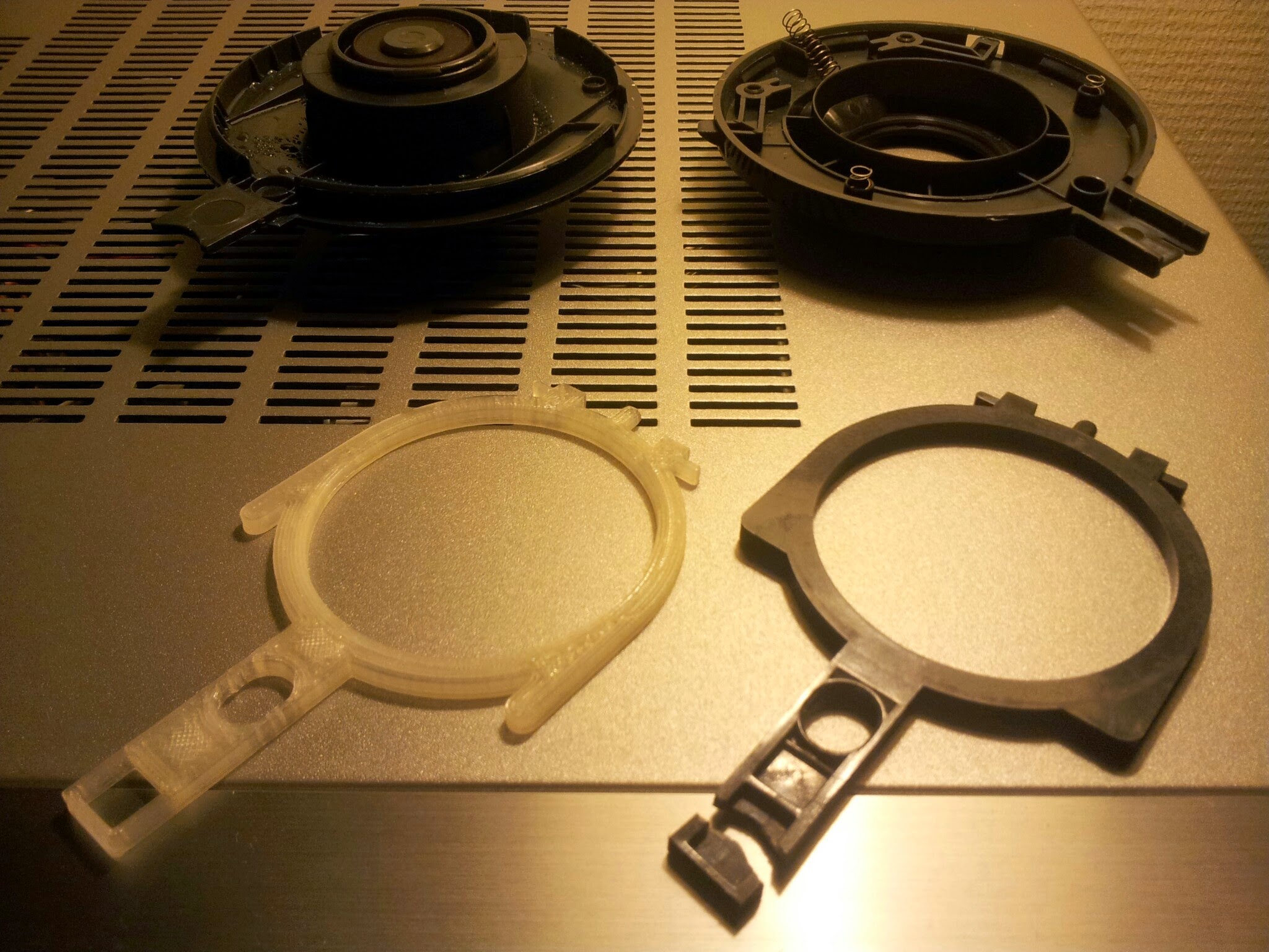 The white thing at the bottom left is the new printed part. At the bottom right the broken part is shown.