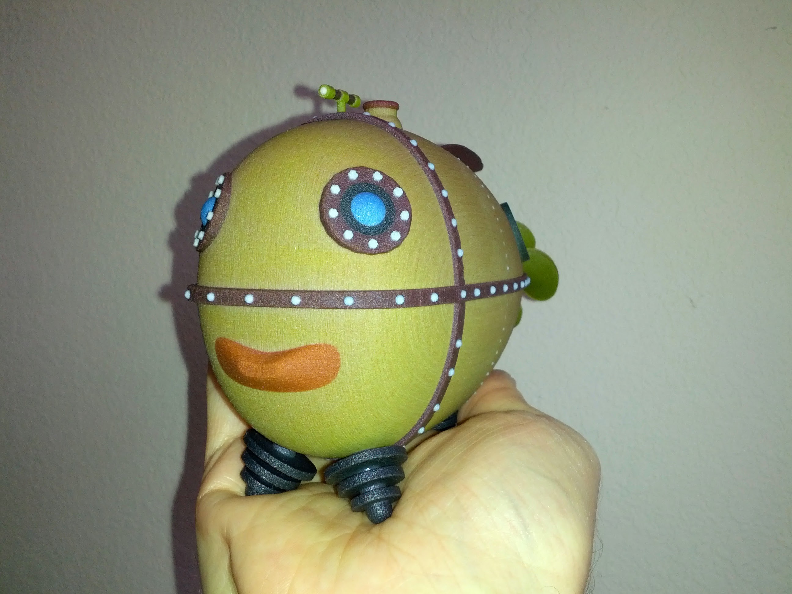 The steampunk submarine I designed in Blender arrived from the 3D printers today. The model is in full color sandstone. The details came out really great.