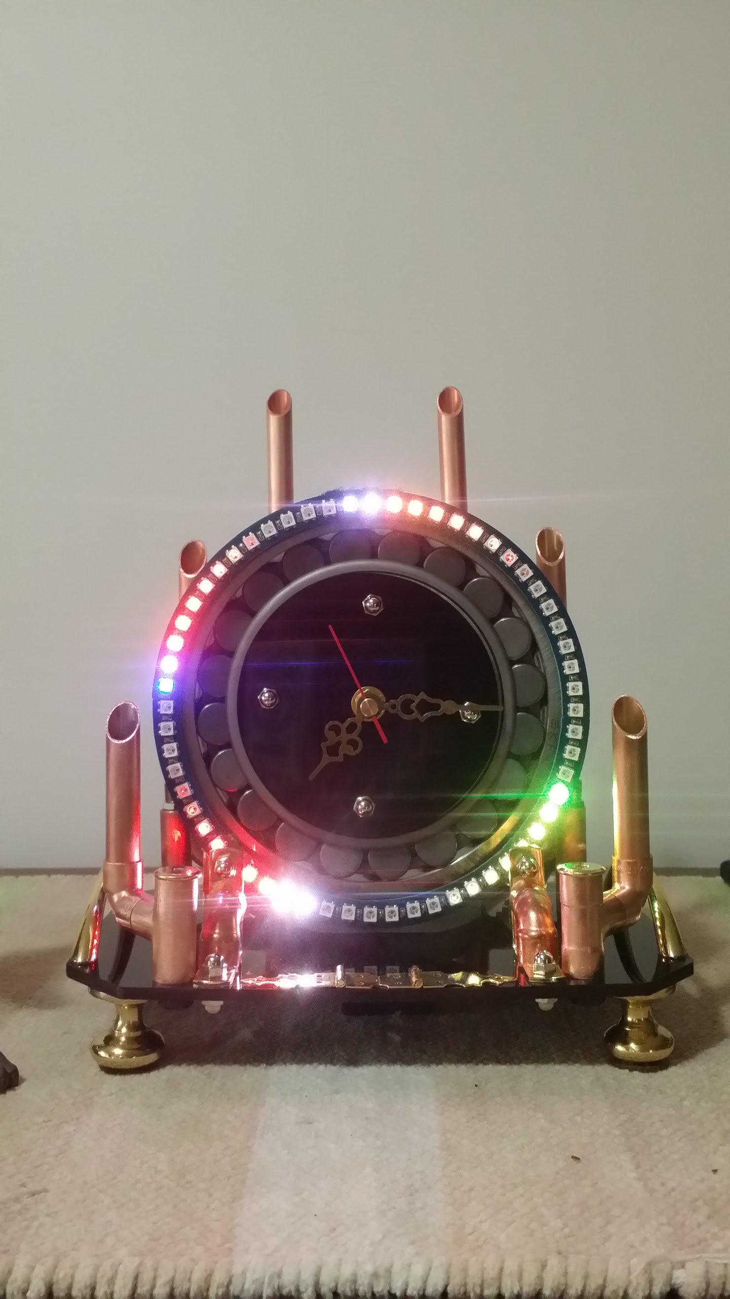 The steampunked view of a skf bearing and 60 pixel led ring run by an arduino nano…took me a week to make.