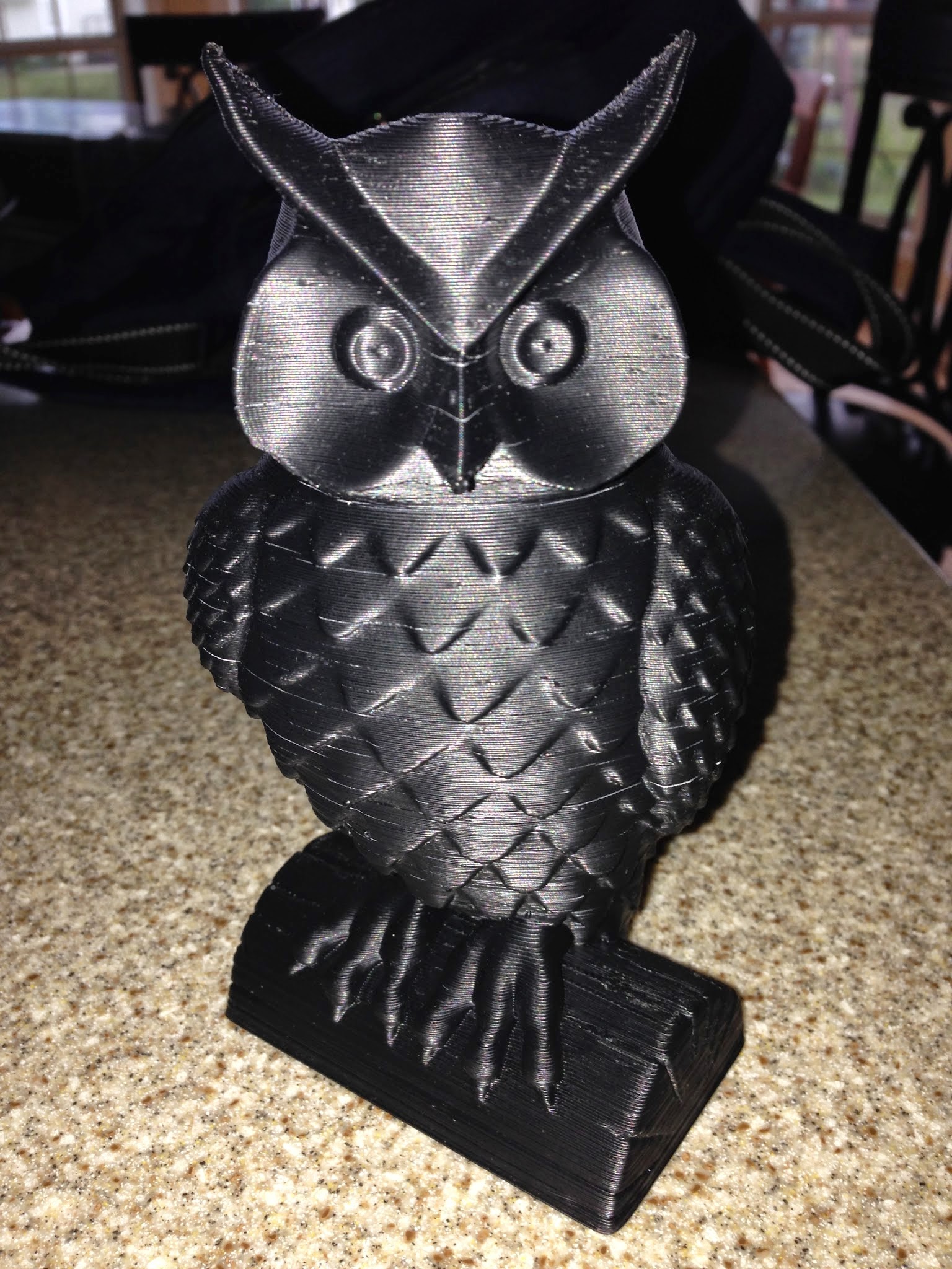 Chad, I am not sure I follow what you are saying in context of my post. I am aware of services. I have a lot of contacts in the trade that could get me anything at a reasonable cost. I used to do consulting for a company that sold Objet printers. This is about 3D printing for the home and hobby. I could care less about a plastic Owl. It is all about the continuing satisfaction I get from creating something… both the owl and the printer itself. Calling me out with the comment of “…hodge podge BS” does nothing constructive.