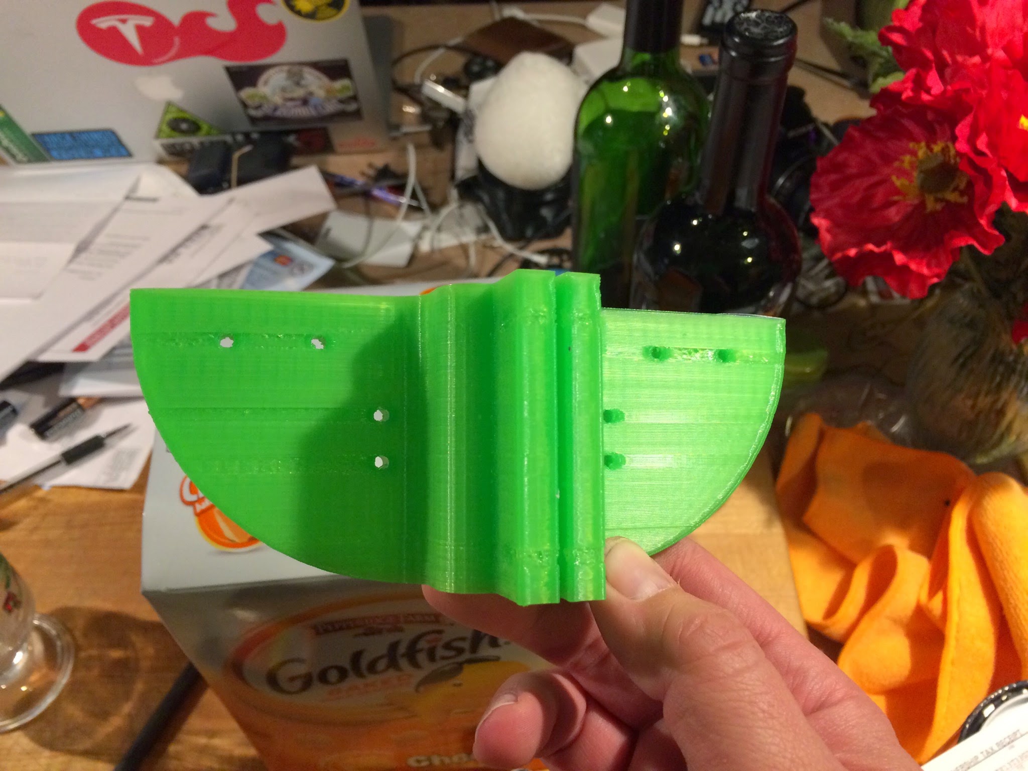 The Z-bed supports were a little wide for a good fit to 19mm bearings…sO I made my own. They’re good enough to work and improve bed movement dramatically, but I’ve noticed a behavior on this and prints from other printers…the banding that happens on the layers with bolt holes…what causes this?