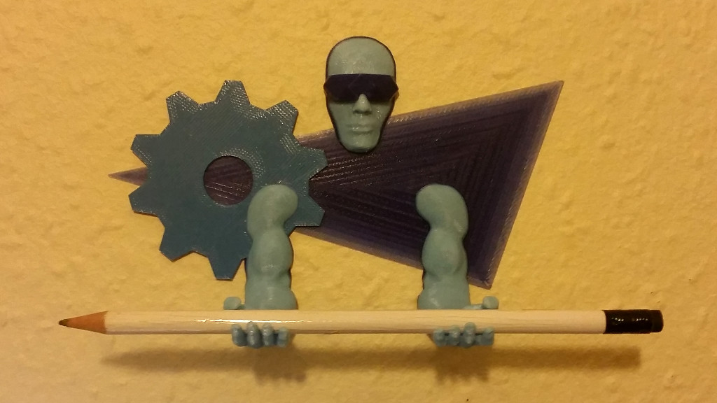 Themed wall-mounted pen/tool holder - 3D Printing Guardian. Two color changes.